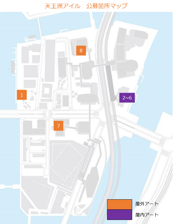 施設内の大型シャッターや街中にある植栽のプランターなど、天王洲の日常の風景をアートのある景色に変えるアーティストからの応募をお待ちしております。