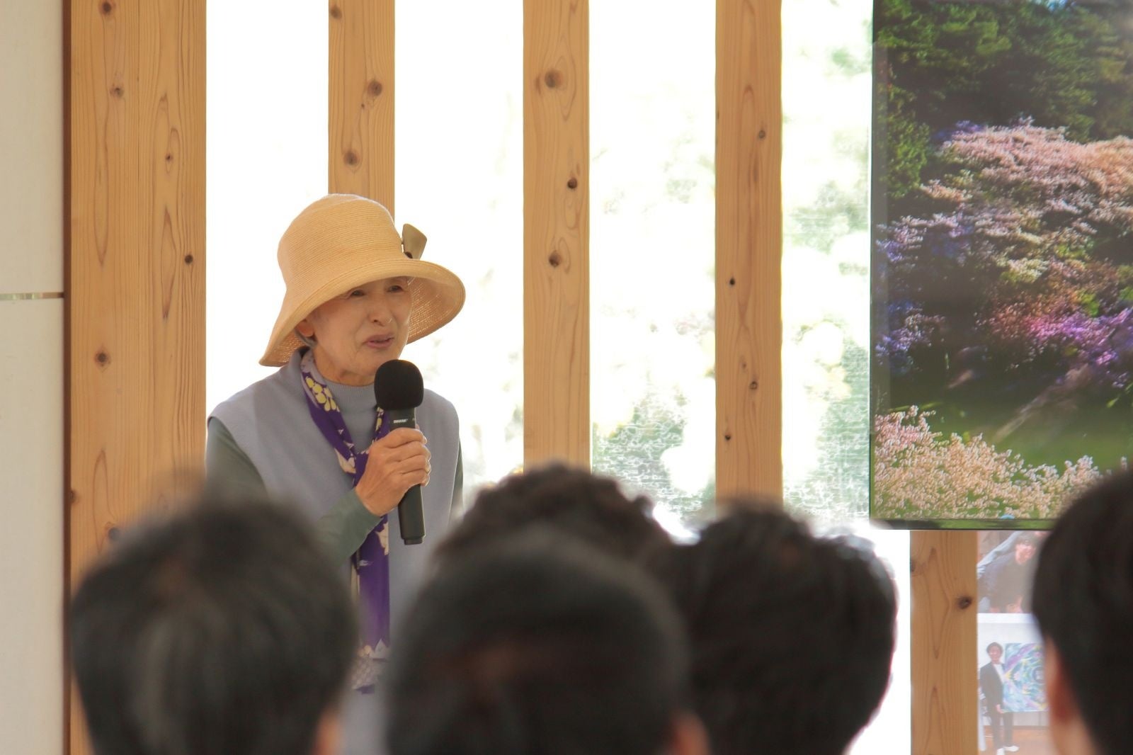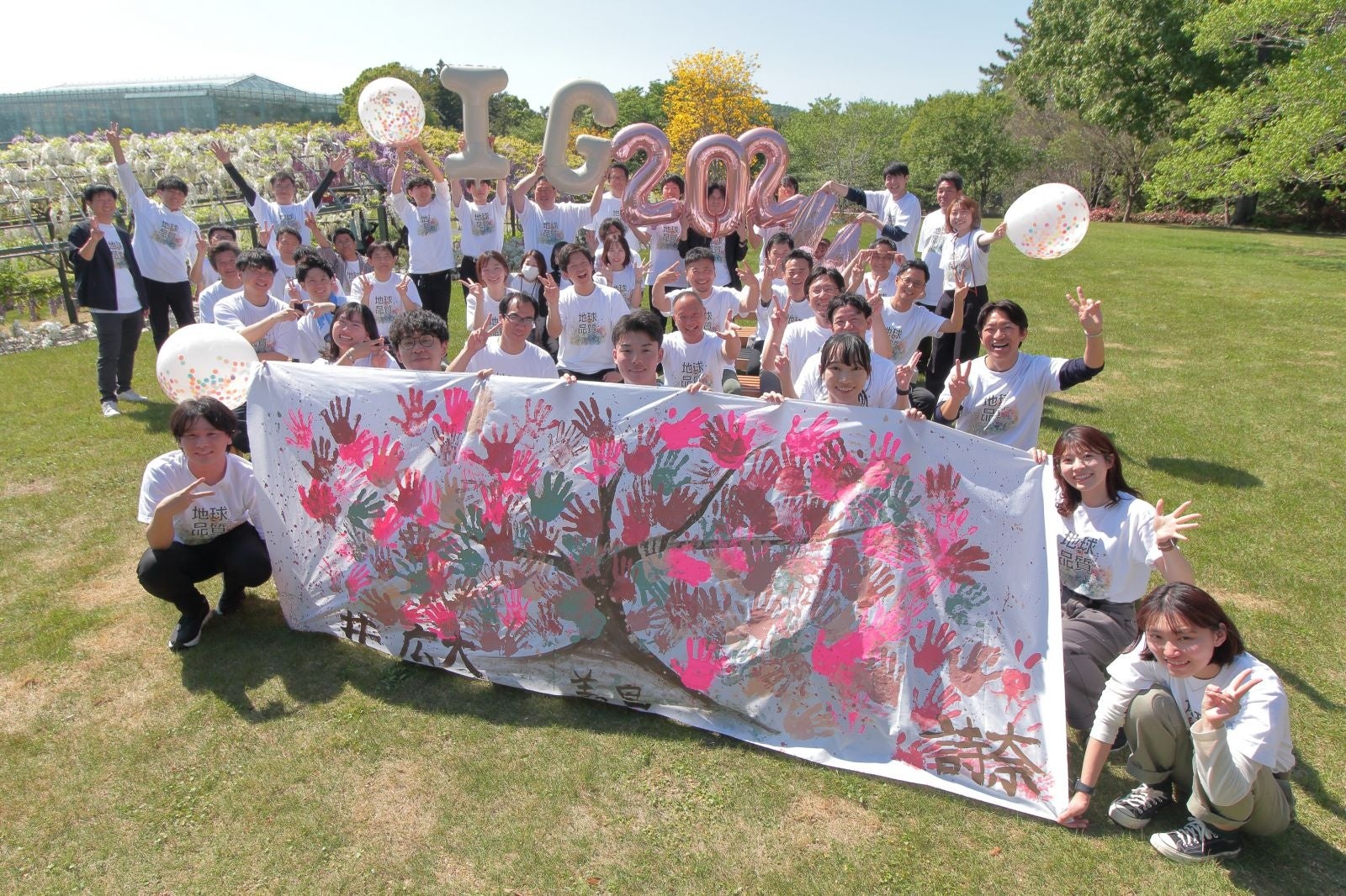 入社式では、先輩社員手作りの花道を新入社員が進み、弊社が地産材で製作し同パークに寄贈した来場者用のベンチに腰掛けた先輩社員が見守る中、新社会人としてのスタートを宣言。また、社員皆で桜に見立てた手形アートを制作したり、はままつフラワーパーク理事長の塚本こなみ氏にも「感動をお渡しするために」のテーマでご講演いただきました。この入社式の様子はインスタライブで配信、遠方の新入社員のご家族様にも、わが子の晴れ姿をご覧いただきました。当該施設で民間企業の入社式を行うのは初めての試み。地域社会に開かれた「はままつフラワーパーク」の魅力も感じられるイベントとなりました。