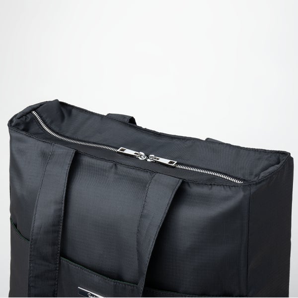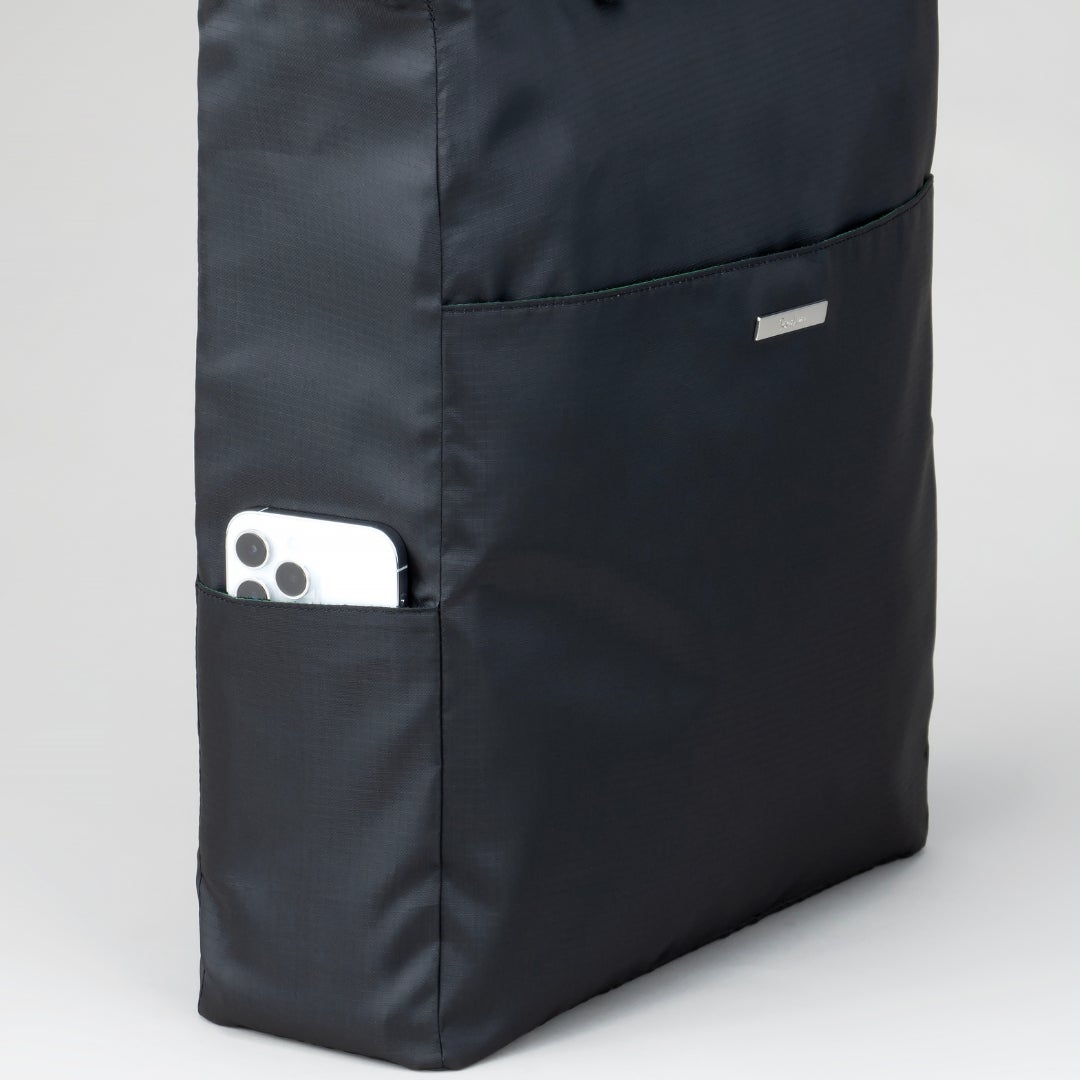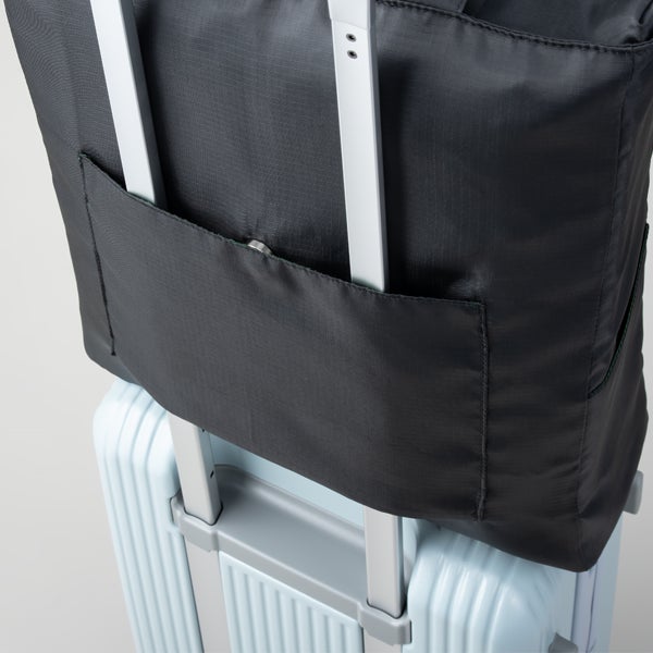 普段はマグネットボタン付きポケットですが、下部にあるファスナーを開けるだけでキャリーバーに固定できるようになります。さらにキャリーバーループ時にマグネットボタンを留めると乗せているバッグがズレにくくなり、ストレスを軽減することができます。