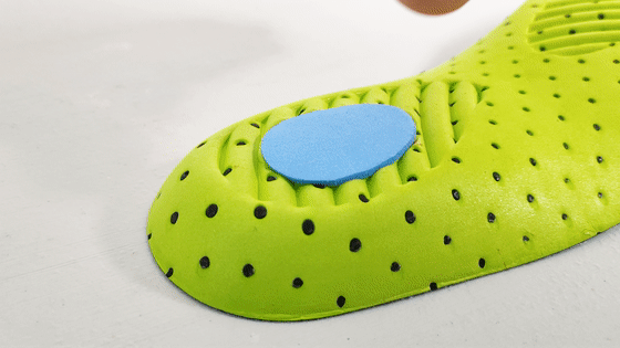 インソールに弾力性がないと、U型の足底にフィットせず足首に負担がかかります。