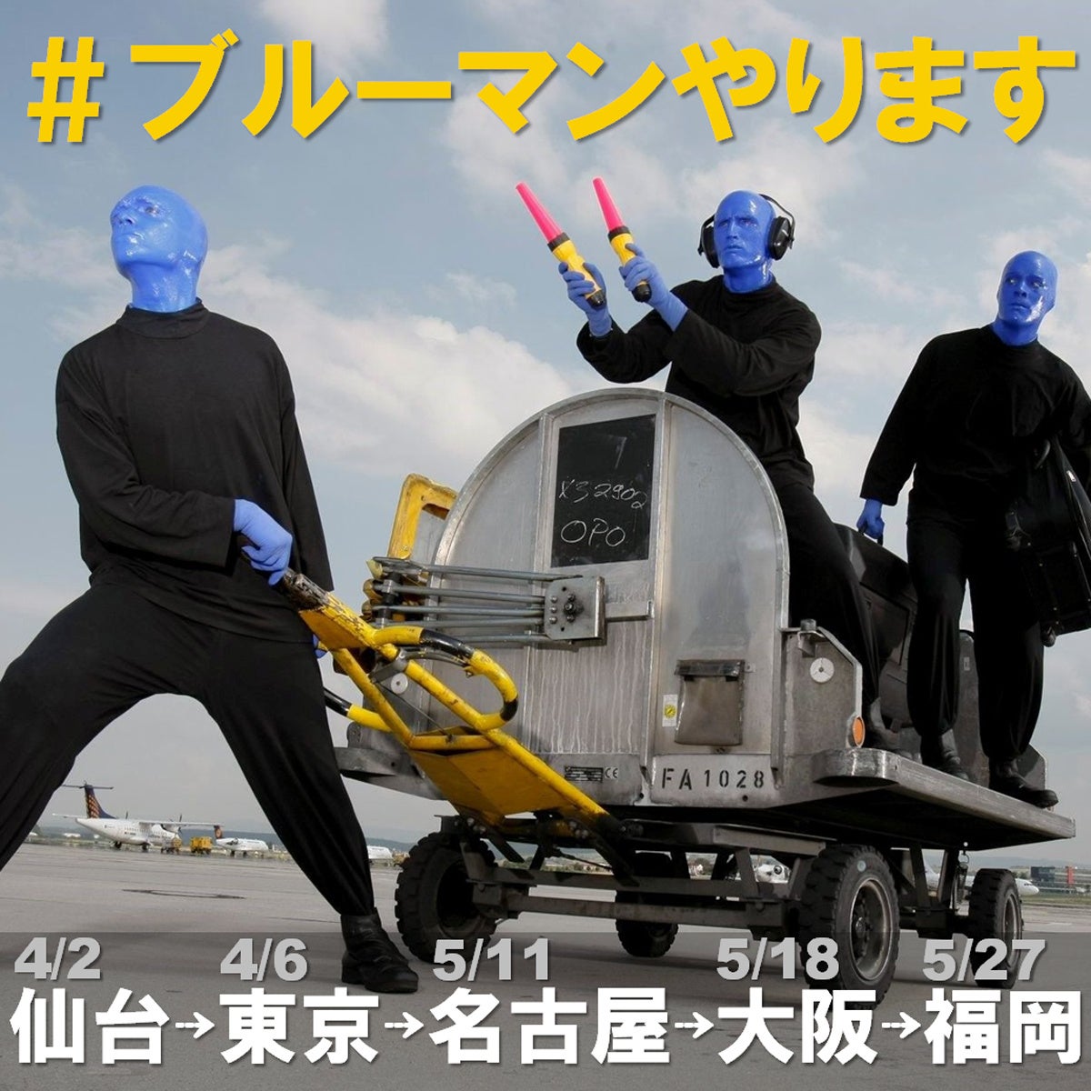 ブルーマングループワールドツアー IN JAPAN 2022の日本公演の為にブルーマンは成田空港に到着。