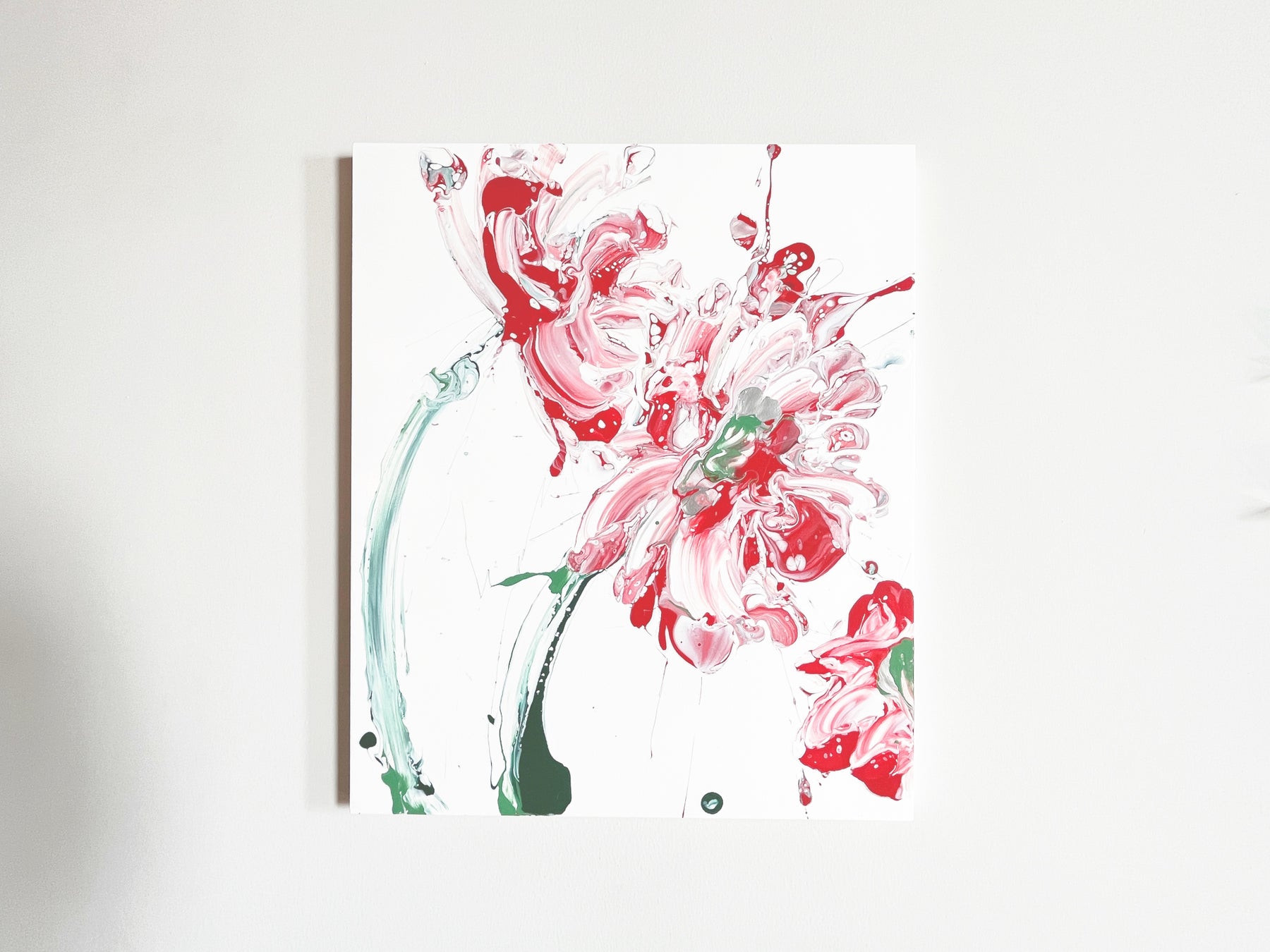 木下友梨香は、花や植物を抽象表現した作品を制作するアーティスト。佐賀の花農家で育ち、幼少期から常に花や植物に囲まれた環境で過ごして、花や植物をモチーフに幼い頃の記憶をスケッチするように作品を制作してきました。