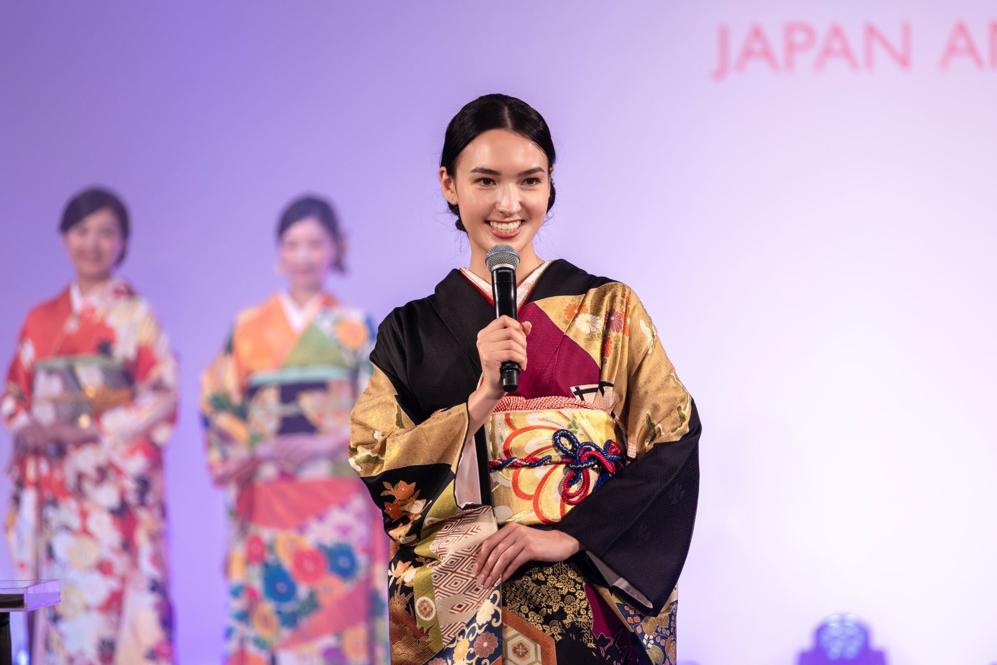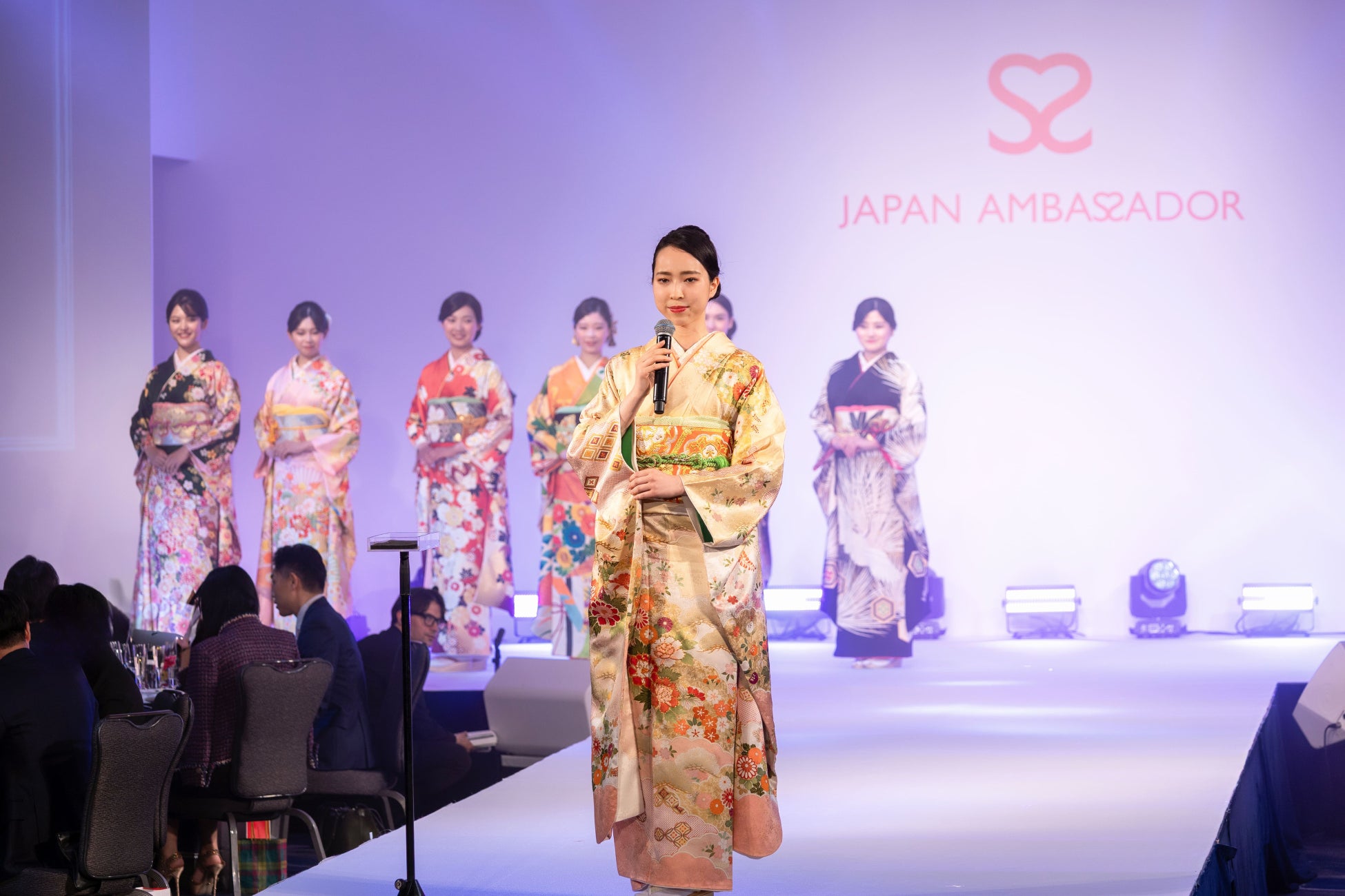 続いてJAPAN AMBASSADORのプロデューサーを務める都筑多佳恵が登壇。「世界中が今後どのように進むか不安ないま私にできることは、日本を知り、学び、誇りに思うことだと感じました。そしてこれからの日本を担う若者にそんな機会を与えることを私の役目としたいと思いこの大会を主催しました。今年度のOKEIKO(事前レッスン)は約100時間。今年度はさらに優秀なコンテスタントに恵まれ、これからどんな活動ができるのか私自身も楽しみでなりません。本日はどうぞお楽しみくださいませ。」と本大会にこめる熱い想いと期待を伝え、いよいよ最終選考会がスタートしました。