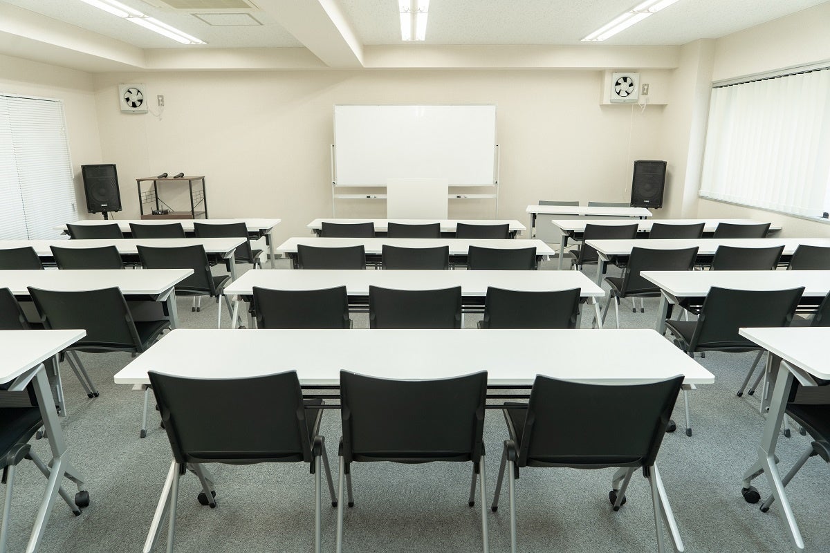 高速Wi-Fi、音響設備(無線マイク2本、有線マイク2本、簡易PAセット)、ホワイトボード、演台、プロジェクターなどを備えています。会議やセミナー、講演会、説明会、商談、社内研修、ワークショップ、オンライン配信といった幅広い用途でご利用いただけます。