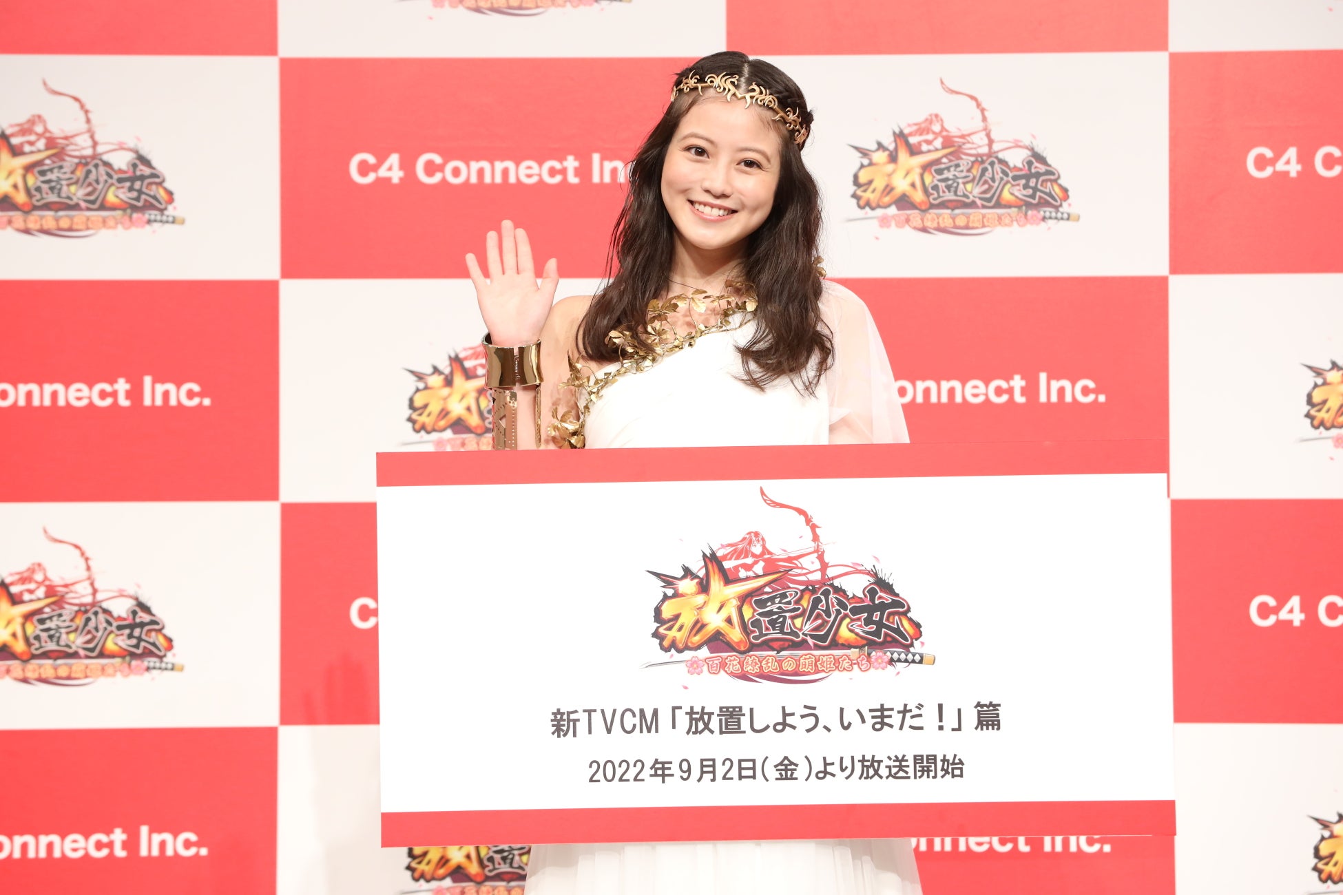 C4 Connect株式会社(本社:東京都新宿区)は、現在サービス中のスマートフォンアプリ、美少女RPGゲーム『放置少女〜百花繚乱の萌姫たち~』(スマートフォンアプリ及びブラウザ版)(以下、『放置少女』)の新TVCM『放置しよう、いまだ!』篇の発表会を2022年9月1日(木)に開催いたしました。本TVCMに出演される今田美桜さんが登壇し、TVCM撮影での裏話やゲーム要素を盛り込んだトークテーマに合わせてプライベートなエピソードも展開されました。