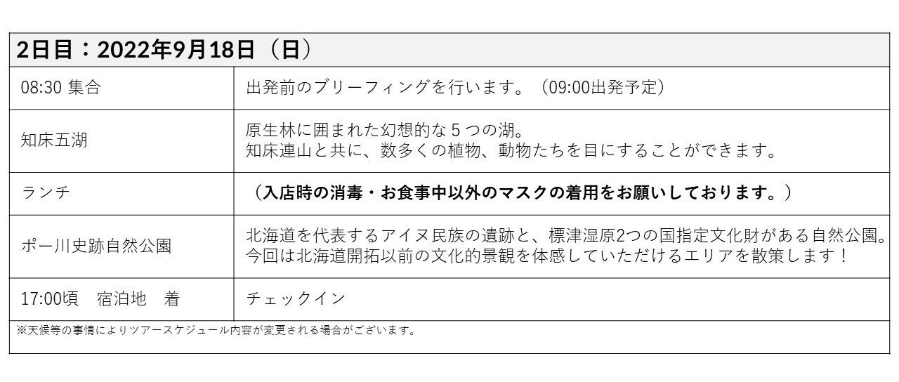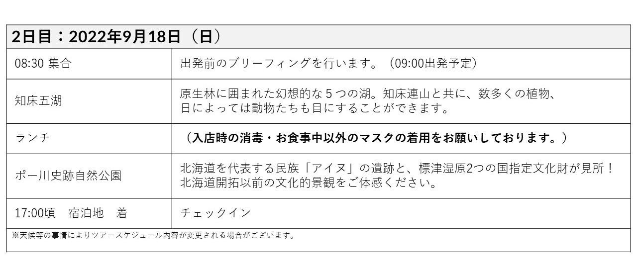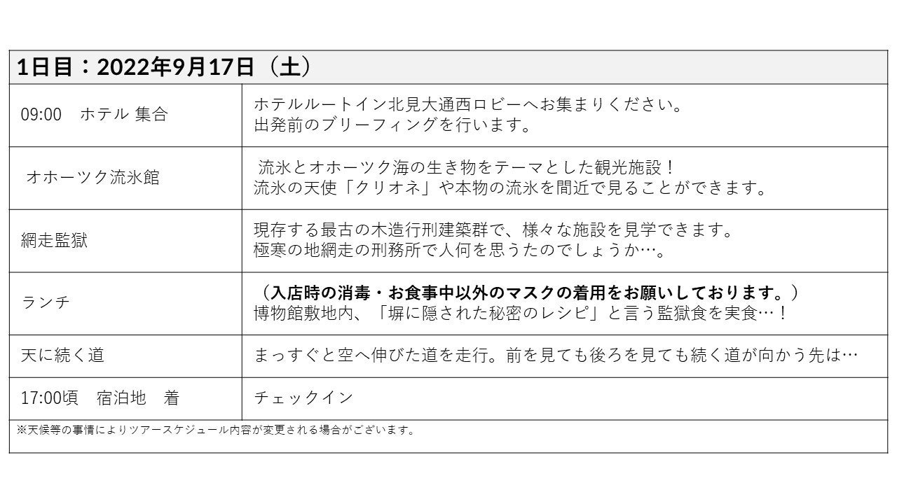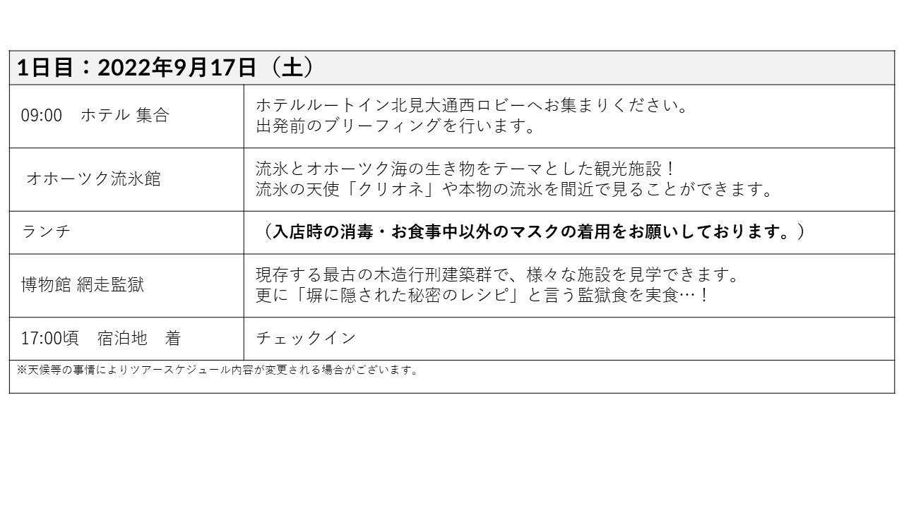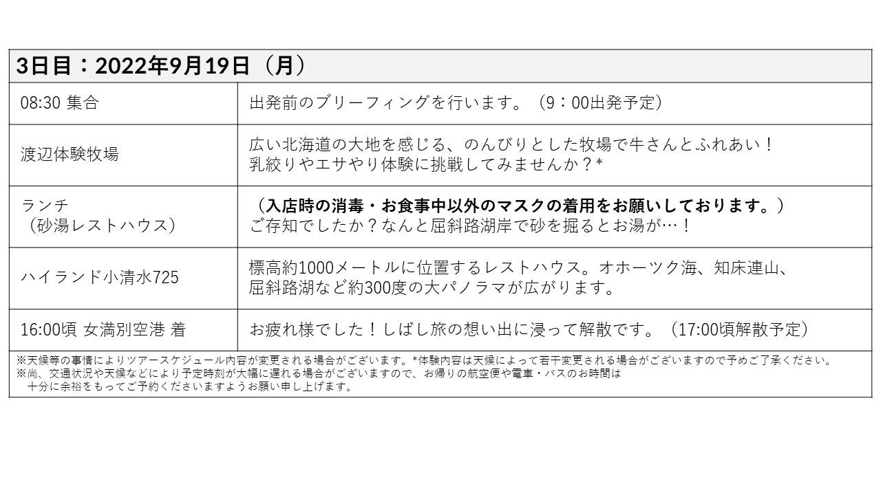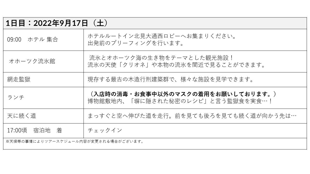 日程:2022年9月17日ー19日の2泊3日