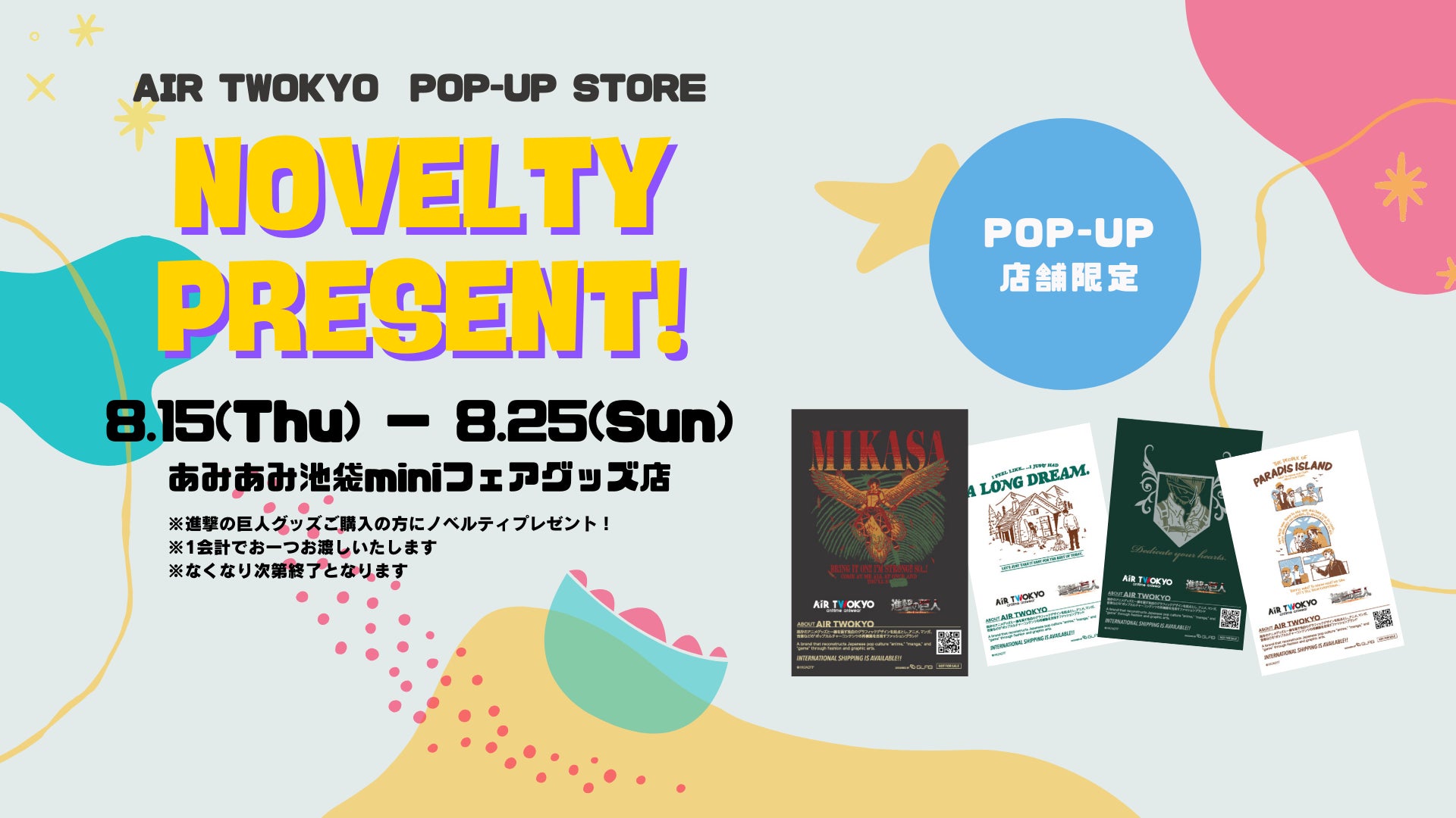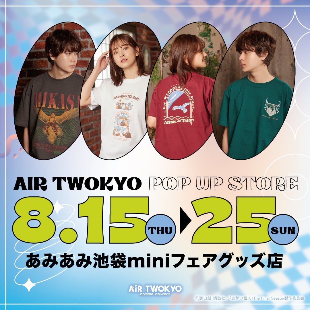 この度、AIR TWOKYO(エアトゥーキョー)三回目となるPOP UP STOREが2024年8月15日(木)~2024年8月25日(日)の期間、あみあみ池袋miniフェアグッズ店内にて、人気アニメ・映画作品のアパレル、雑貨を多数ラインナップしたポップアップショップをオープンいたします。