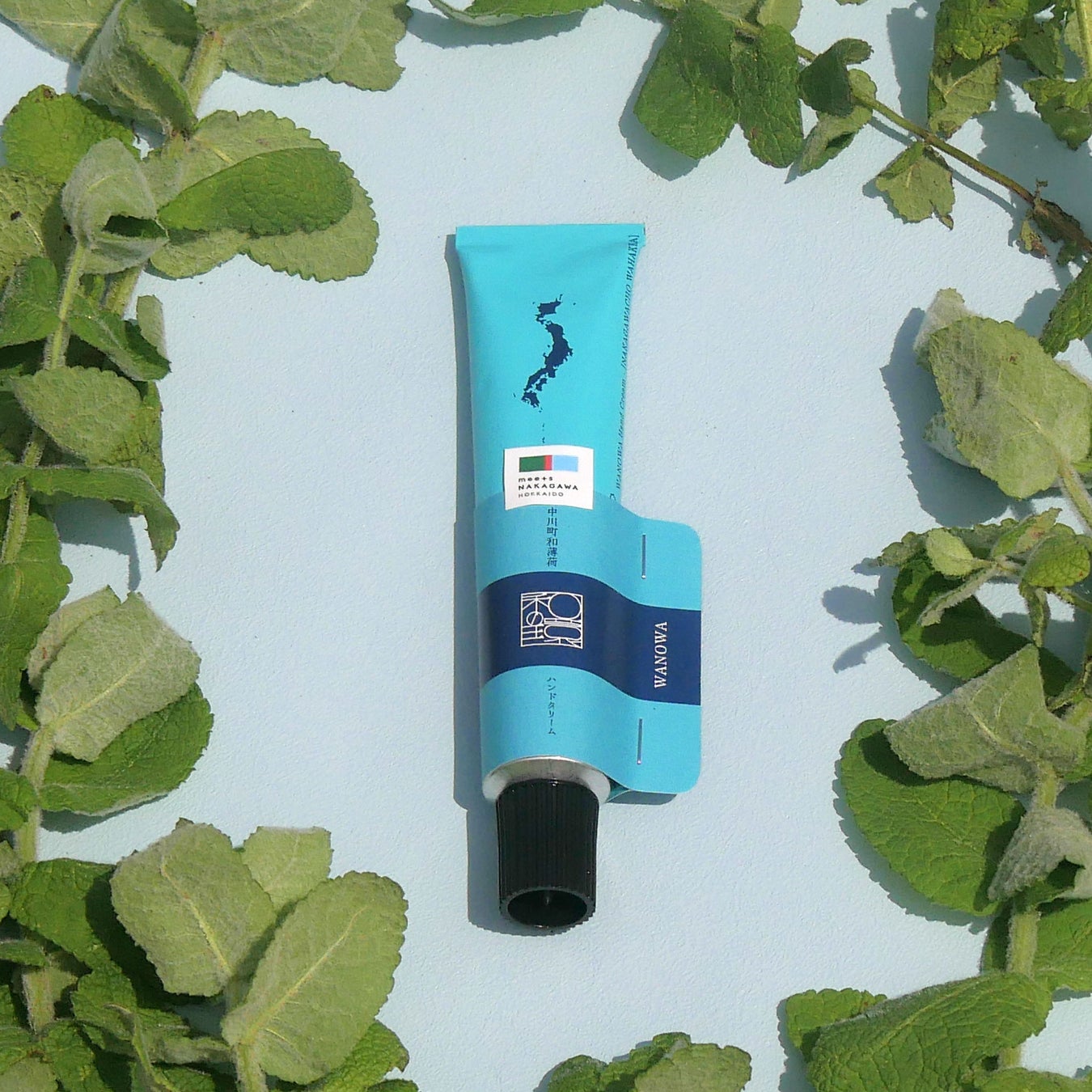 北海道中川町産の貴重な和薄荷を配合したハンドクリーム。潤いと保湿力のあるクリームは、伸びが良くベタつきにくい使用感で、塗り広げると和薄荷特有のほんのり甘い香りとひんやり感がお肌を優しく包み込みます。