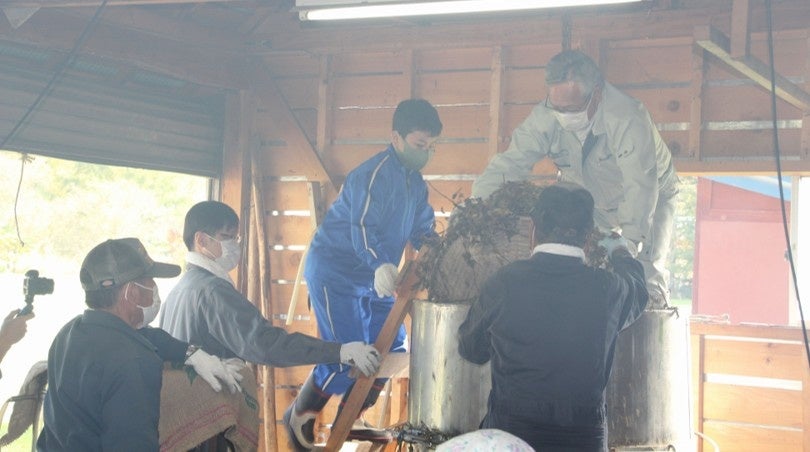 平成16年、いよいよ地元の中学生の授業で蒸留体験がスタートし、令和6年からは幼児センター教員の「小さい頃から中川町らしい香りを楽しみ、地域を感じてほしい」という想いから、さらに子供たちの見学が増え、地元ならではの香りとして北海道中川町和薄荷の文化継承が続けられています。