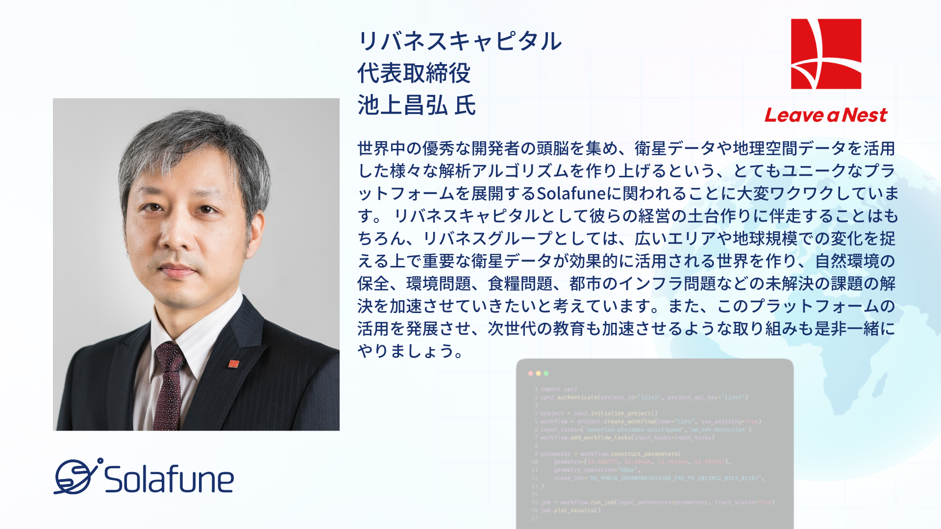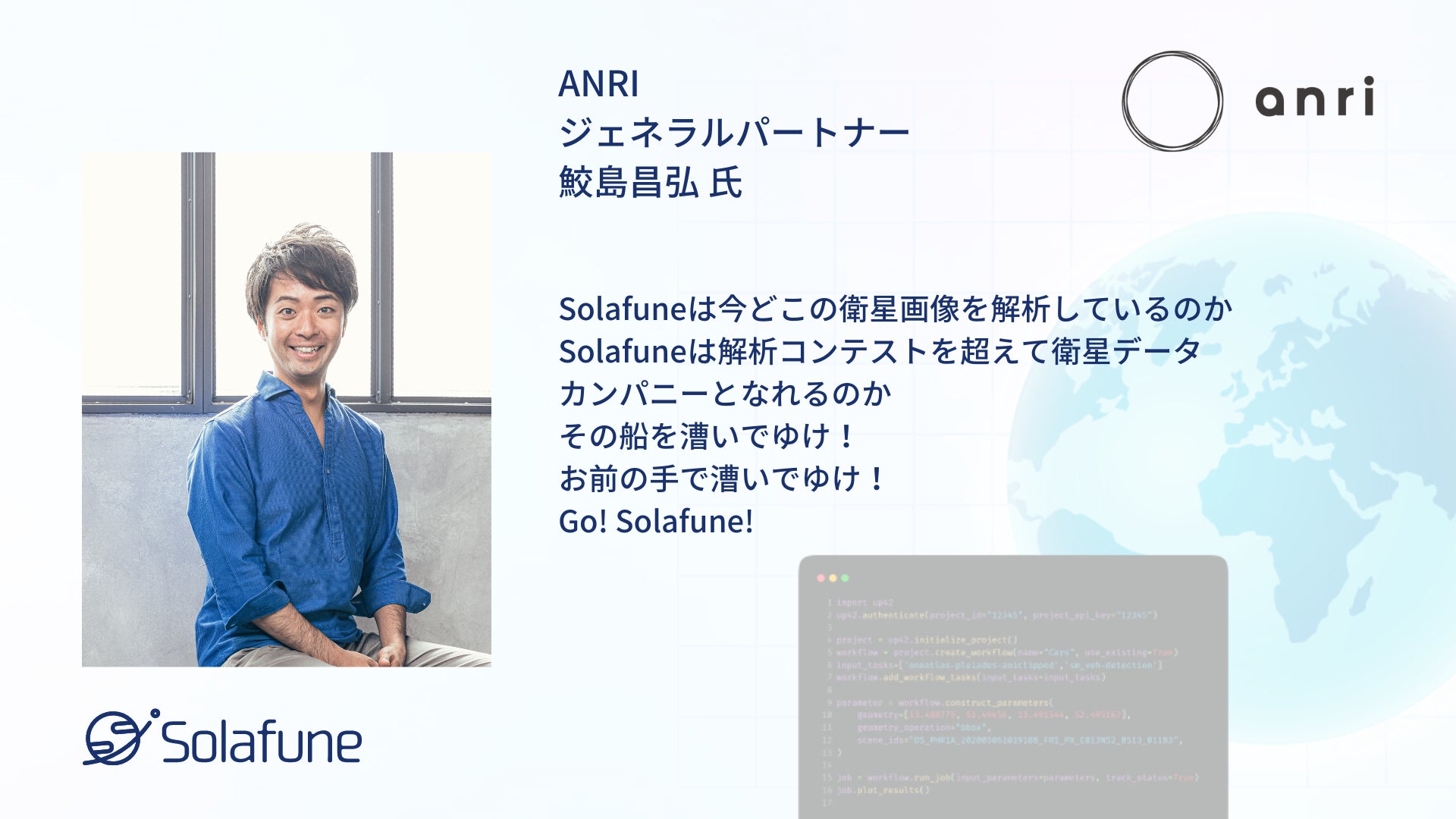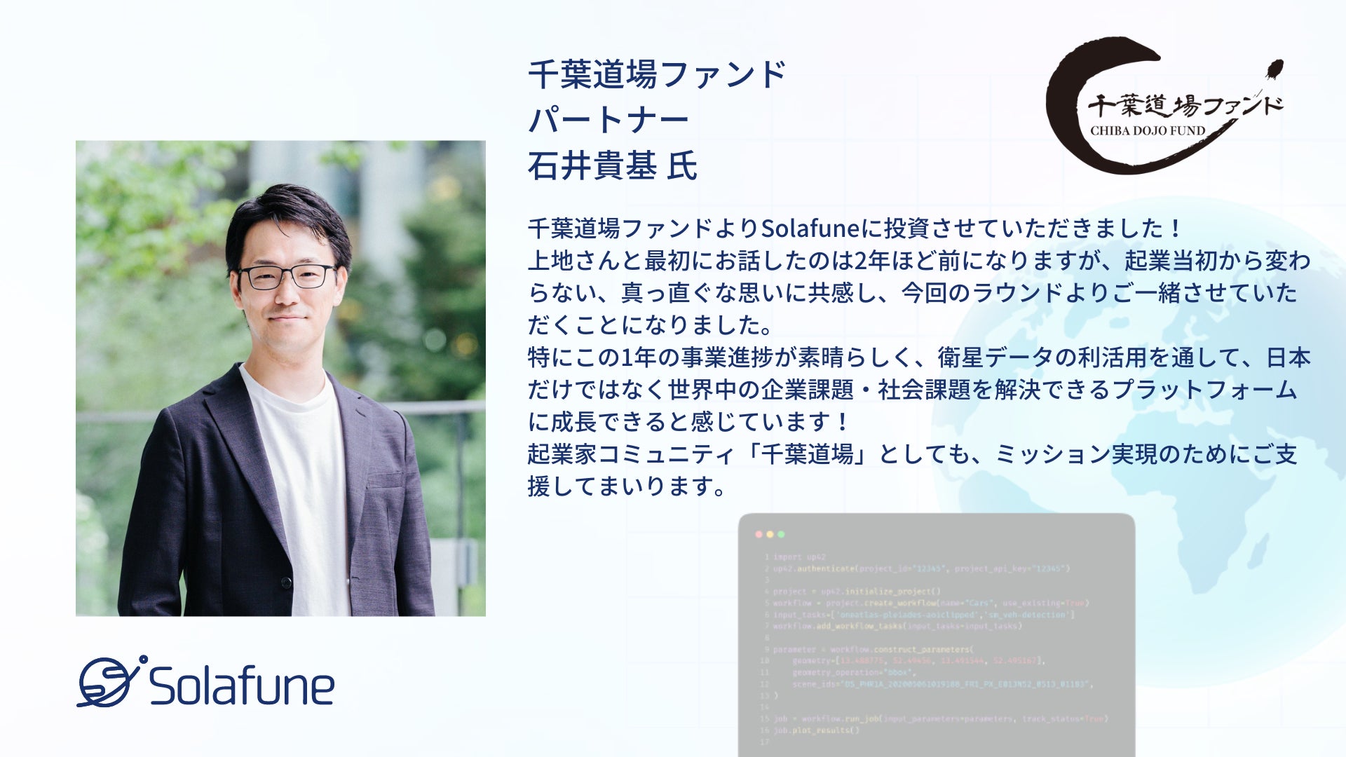 衛星データ解析技術の開発を行うSolafune、2億円の資金調達を実施
