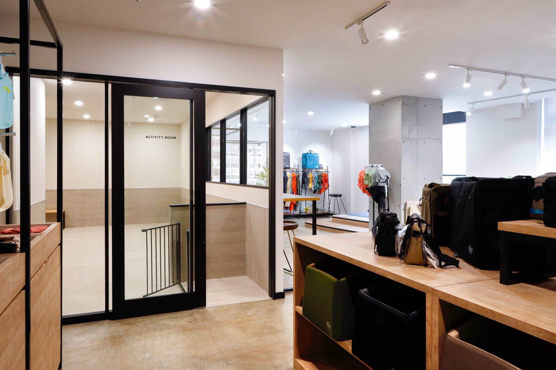 店内には、ワンちゃんたちが伸び伸びと遊べる「アクティビティルーム」を新設。カフェやお買い物とは別に、ワンちゃんたちの楽しみの一つとして室内ドックランをご用意しました。