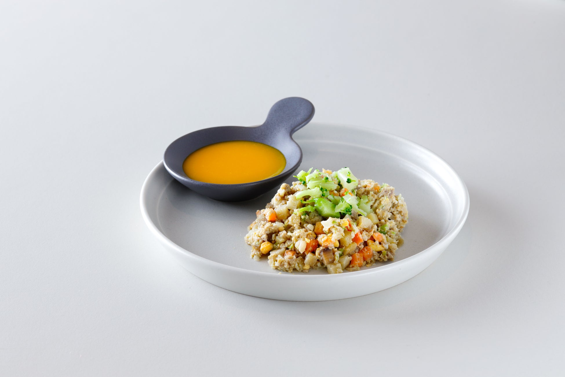 ワンちゃんのお好みに合わせて、4種類のテイストをご用意しております。添えてある本日のスープは、日替わりで3種類の味をご用意しております。