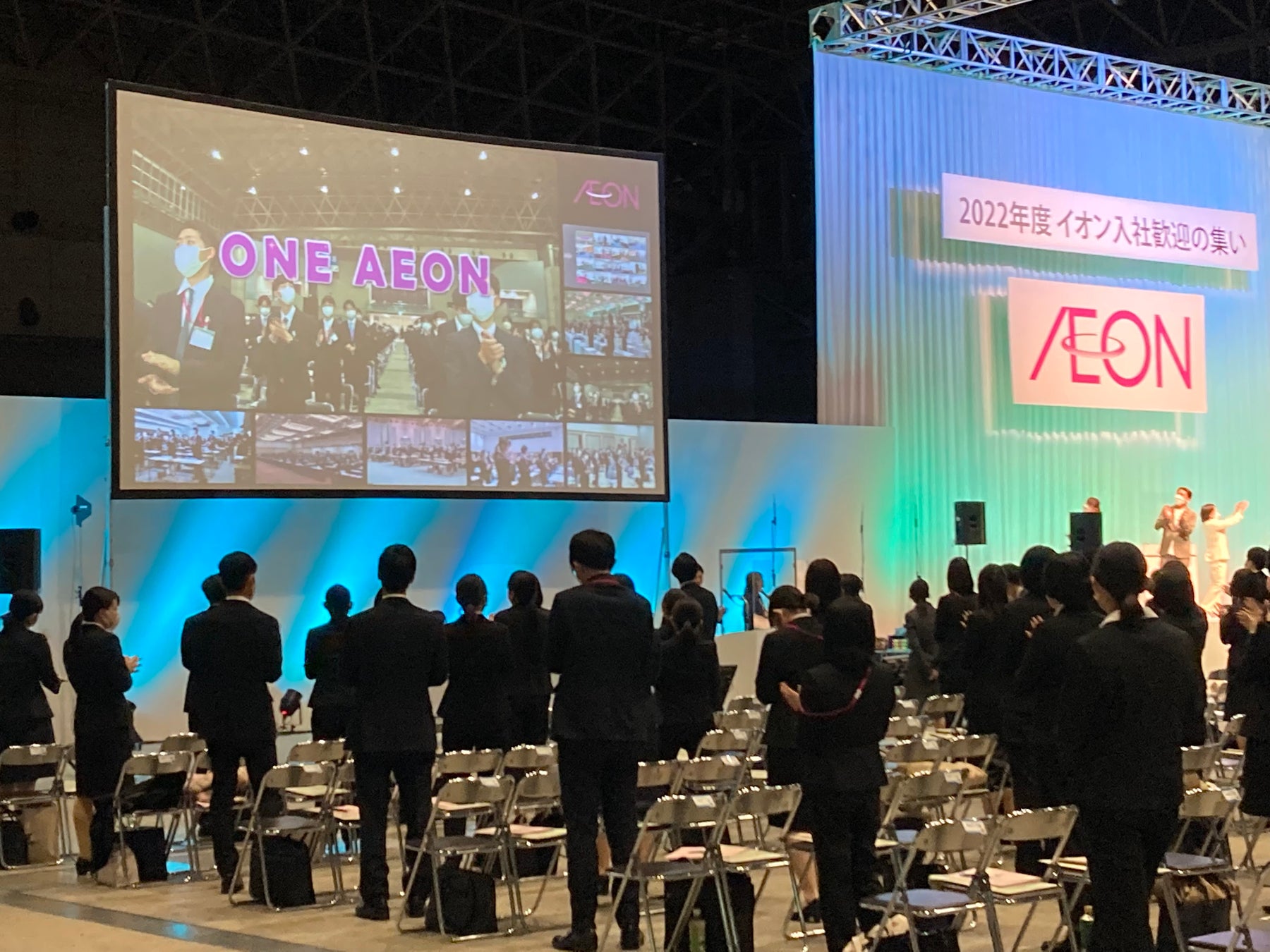 集いの後半では、新入社員がグループの一体感と同期とのつながりを感じることができる、「ONE AEON」が行われ、当社が演出・進行をサポートしました。