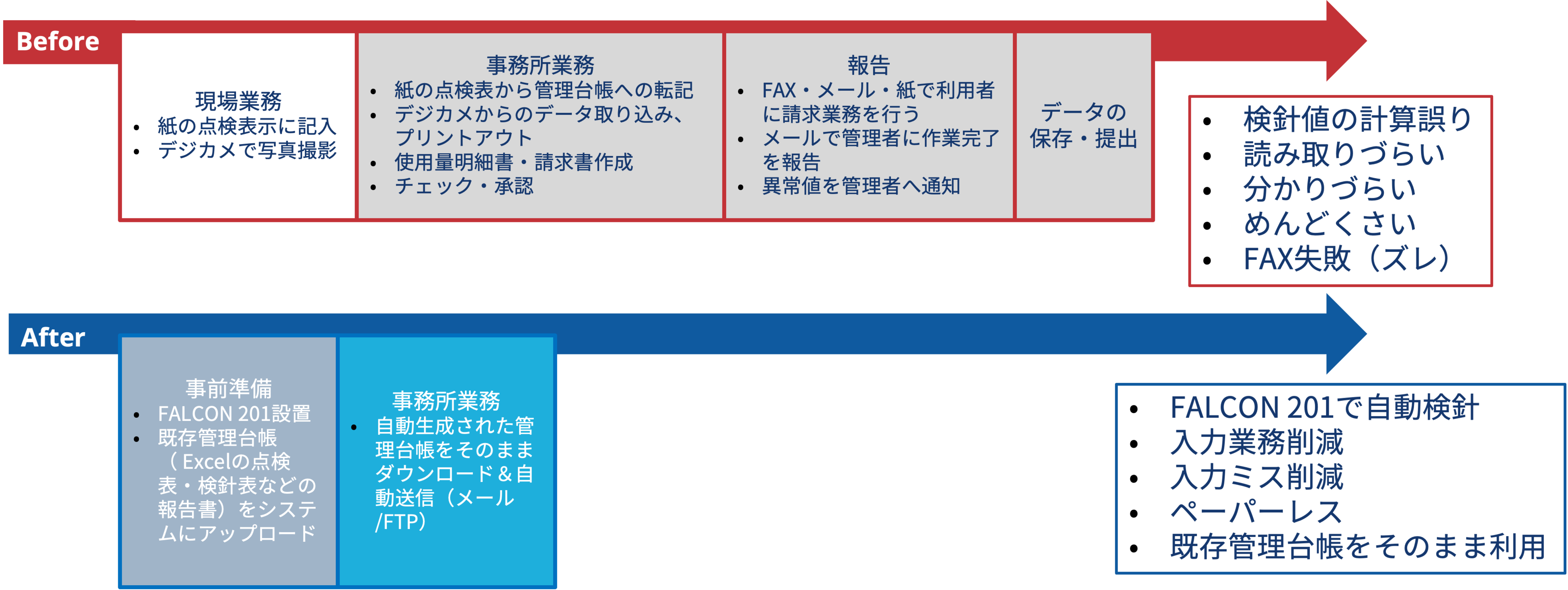 そこで当社では、取り付けるだけで遠隔自動検針を実現できるAIoTカメラ「FALCONシリーズ」を開発し、業界内で高まりつつあるニーズに応えることを目指してまいりました。