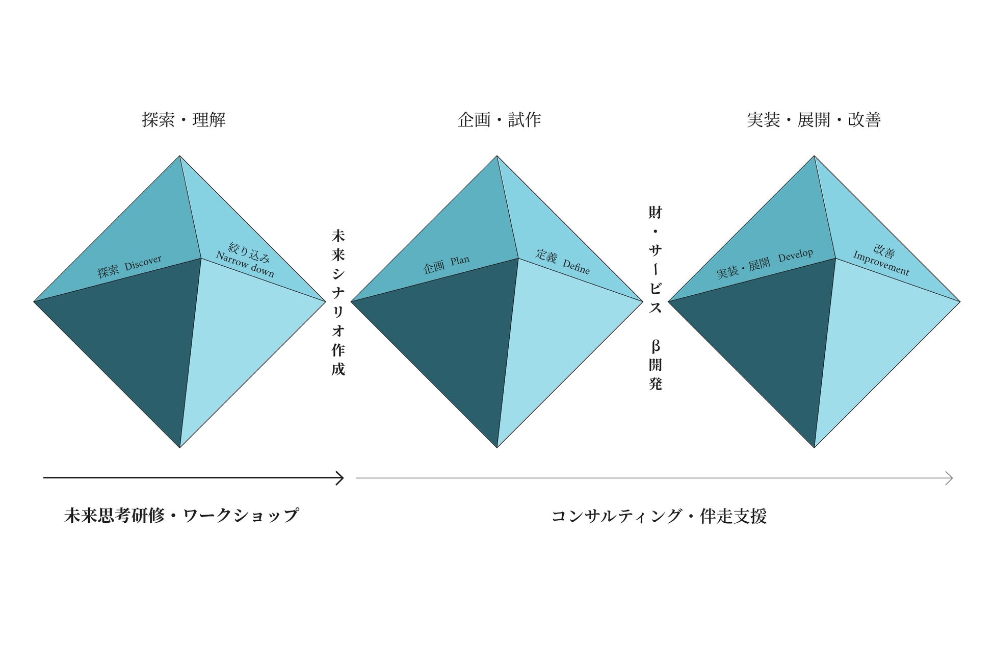 大手企業を中心に300社以上の支援の経験とノウハウを基にした、理想の未来を実現する未来思考のトリプルダイアモンドメソッドをベースに作成されました。