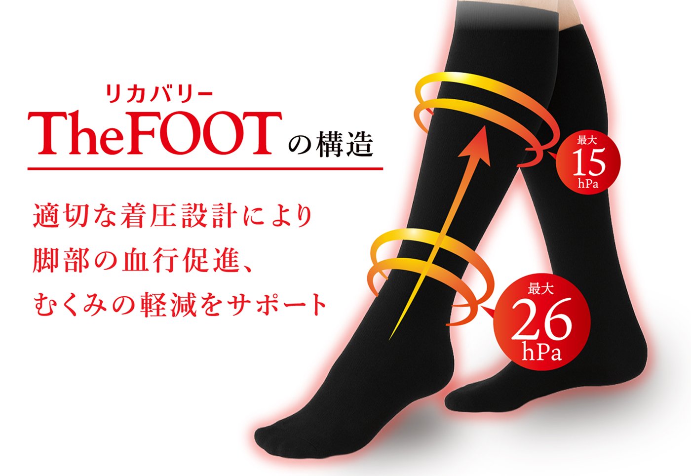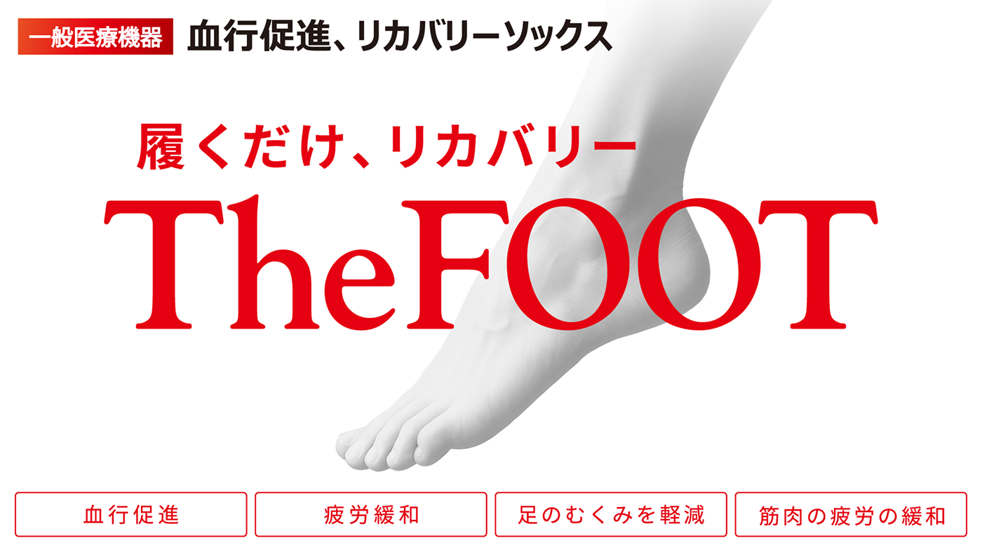 The FOOT(ザフット)は、一般医療機器※の基準に基づいて設計されたリカバリーソックスです。