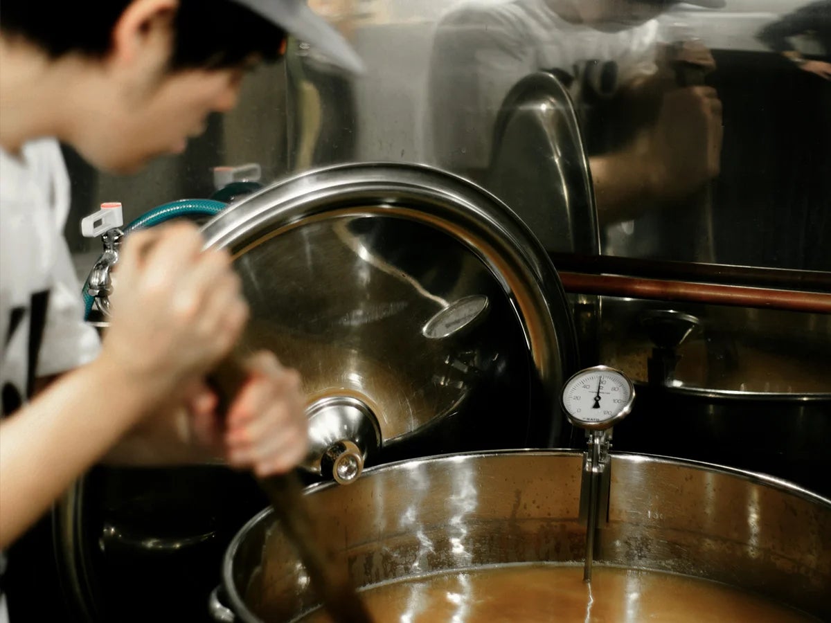 1つのタンクでどぶろく、別のタンクでビールを醸造し、発酵後にブレンドする二種同時発酵の製法を採用した。