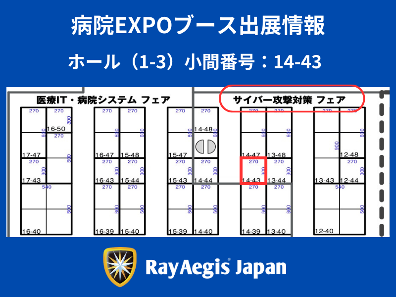 - 会場: 幕張メッセ[病院EXPO]ホール:1ー3 、サイバー攻撃対策フェア(小間番号14-43)