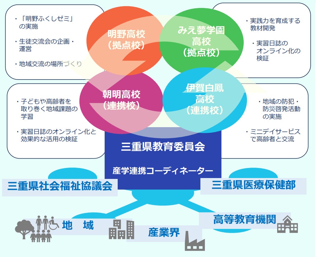 対象校:県立明野高等学校(福祉科)、県立みえ夢学園高等学校(総合学科)、県立朝明高等学校(ふくし科)、県立伊賀白鳳高等学校(ヒューマンサービス科)