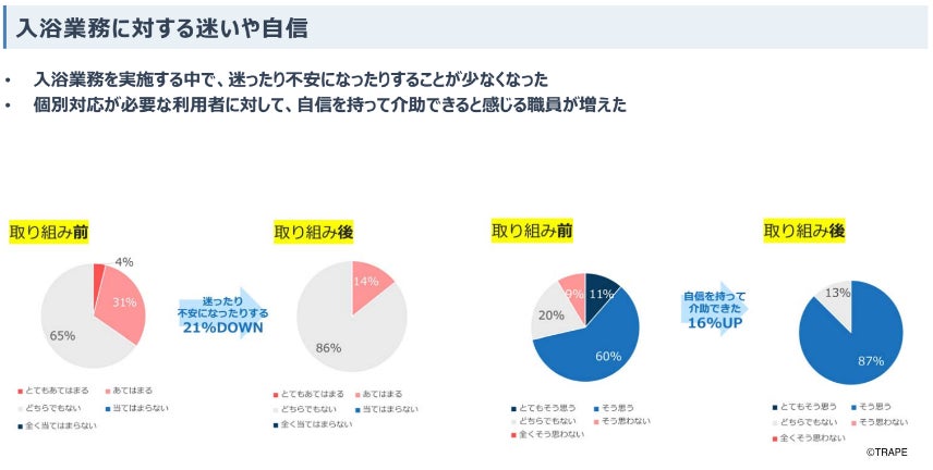 入浴時の利用者ごとの個別対応業務を整理し、毎日の細かな対応変更内容がわかりやすい共有方法を検討したことで、職員の業務に対する迷いや不安が軽減し自信をもって利用者に良いケアを提供することを可能にした取り組み
