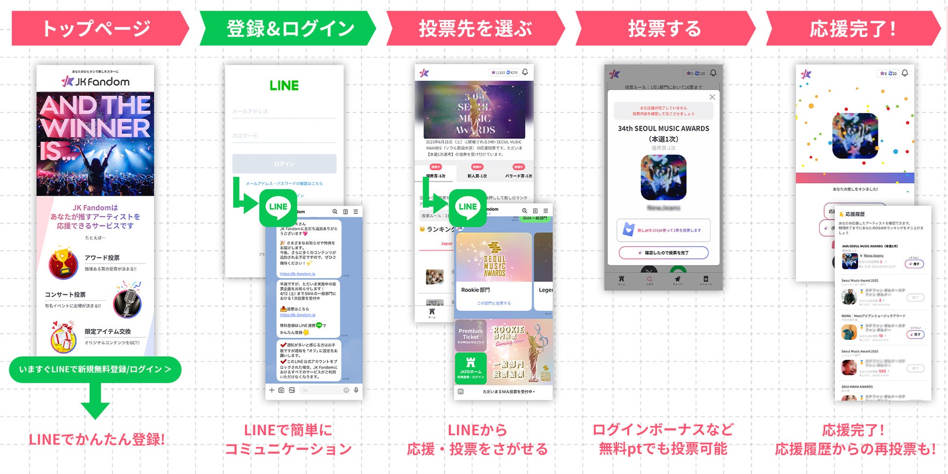 JK Fandomでは、今後もK-POPを中心とした応援投票をはじめ、JK Fandom独自の付加価値とともに様々な形での応援方法を提供することで、数多くのファンの皆さまのファンダム活動を支援いたします。