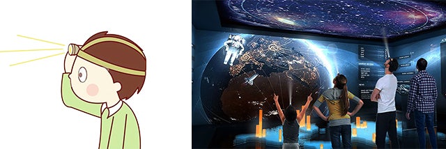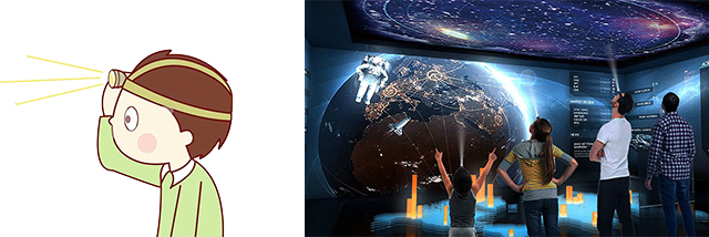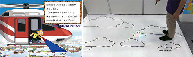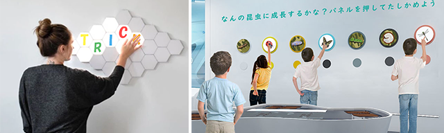 ◆ライトパネルにタッチして光ることで、クイズの答えやビジュアルが現れる展示物