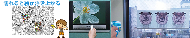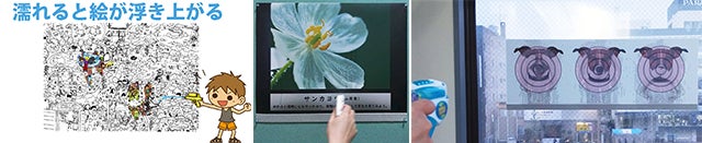 ◆水に濡れると絵が浮き出るアトラクションパネル展示