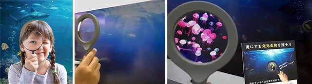 ◆魔法の虫メガネで見えない生物が見える体験パネルを展示。オフラインで楽しめます。
