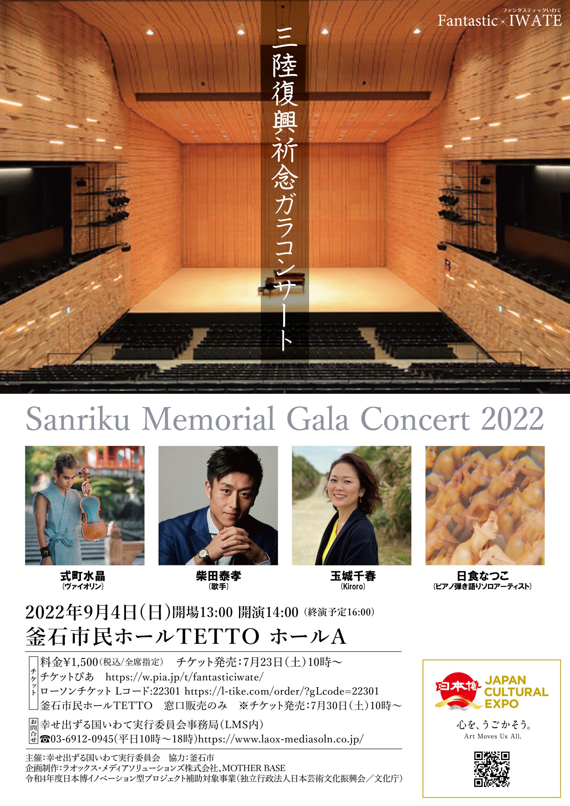 『日本博ファンタスティックスいわて』三陸復興祈念ガラコンサート 9月4日(日)釜石市民ホールTETTOにて開催!!!