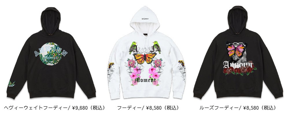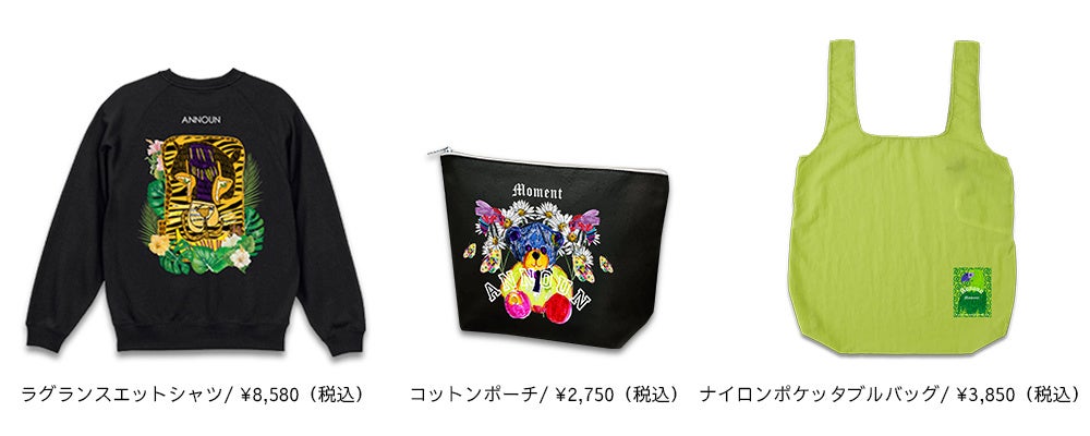 自然や動物をモチーフに個性あふれる原画を描き、ガーデンに蝶々や鳥が飛んでいる風景をイメージしたグラフィック、ANNOUN定番のベアモチーフのグラフィックアイテム、とても暖かいヘヴィーウエイト裏起毛素材パーカー、MA−1を制作。ランチバッグや買い物袋など小物アイテムも充実したラインナップになっており、どれもが高いクオリティーを目指し作り出すANNOUNプロダクトの新作となっております。