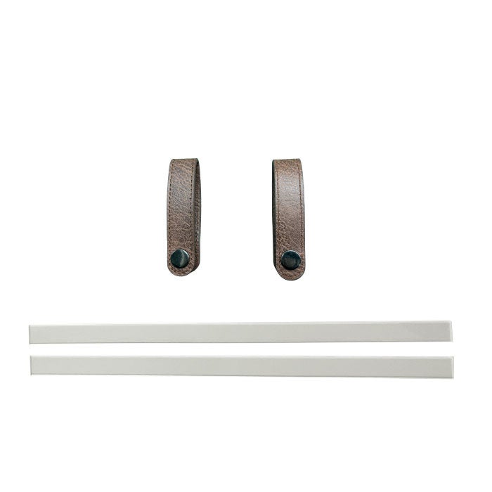 フレームを差し込むだけで設置できるシンプルな構造。屋内用ならではの細いフレームと、合皮素材のつり革を組み合わせたスタイリッシュなデザインが特長です。店頭の案内表示や店舗ディスプレイなど、空間に自然に馴染むお洒落なバナースタンドとして活用できます。