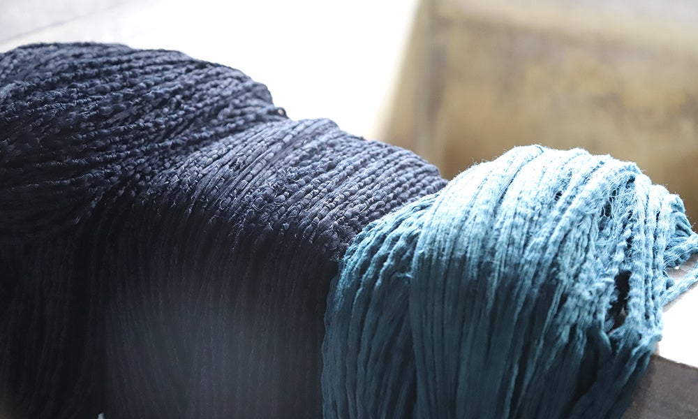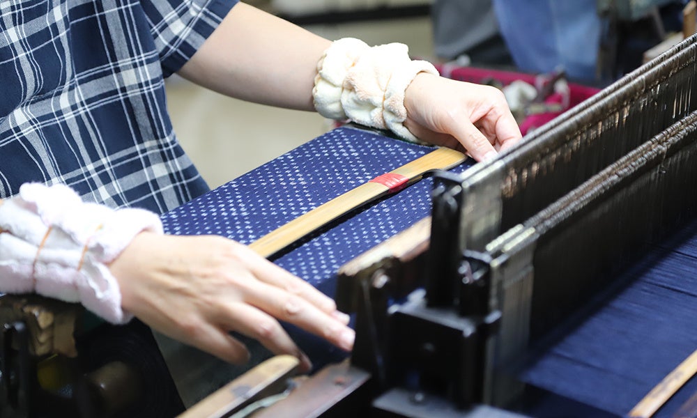今回は福岡県筑後市で大正8年(1919年)創業から約100年。天然藍染、手織りで一本一本、伝統を守り丁寧につくり続ける「池田絣工房(いけだかすりこうぼう)」さんにご協力いただき、繊細で美しく肌馴染みの気持ちよい生地を使用させていただいております。
