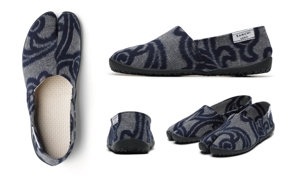 老舗地下足袋メーカーの株式会社丸五(本社:岡山県倉敷市、代表取締役社長:福田 正彦)は2024年4月26日、歩きやすく足の健康によい足袋型シューズ「tabiRela(たびりら)」のプレミアムモデル『SANCHI tabiRela(さんちたびりら)』の新作をリリースします。日本各地の伝統的な生地にフォーカスし、新作となる第三弾は福岡県の「久留米絣」に着目。