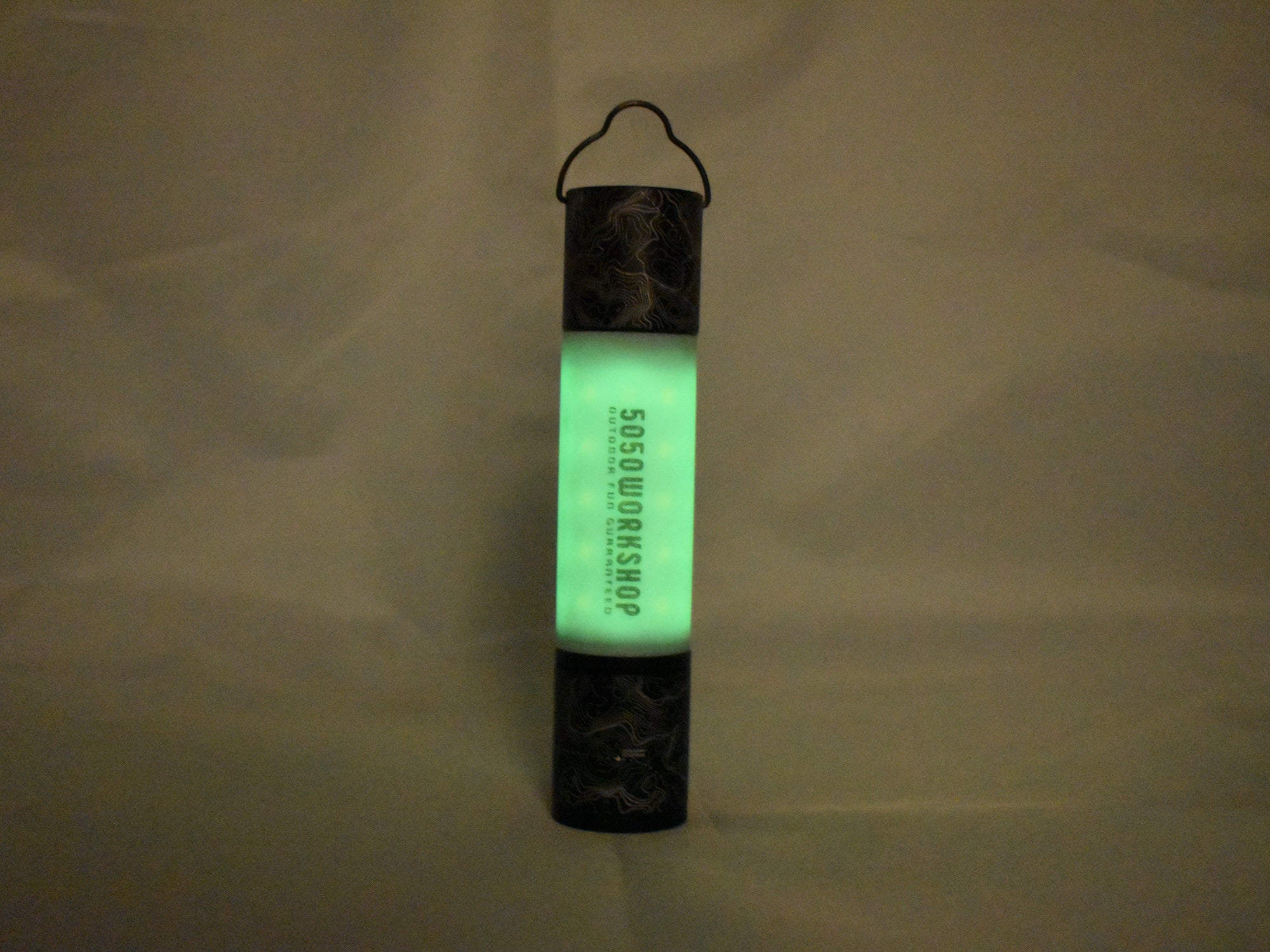 また、ランタンのグローブ部分は蓄光素材でランタンを消した後でもやんわりと光り、見失いません。