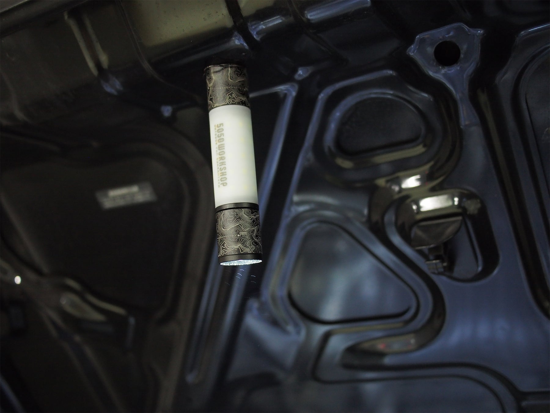 ランタン上部はマグネットになっており車の壁面や鉄製ギアに取り付けが可能です。