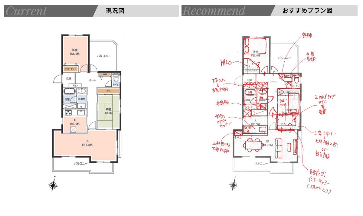 ReoLaboのリノベーションスペシャリストによる手書きおススメプランを掲載しています。