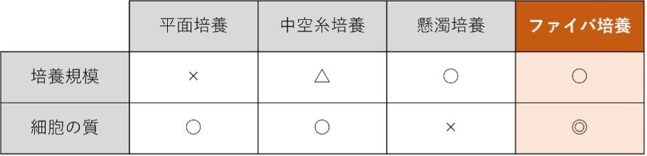 細胞ファイバ技術は、髪の毛ほどの細さの中空ハイドロゲル※3チューブ内に細胞を封入し、培養する技術です。周囲のゲルが内部の細胞を保護しつつ過剰な凝集を防ぐため、培養皿での平面培養や、バイオリアクターを用いた懸濁培養などの従来培養法に比べて、細胞を長期間維持することができます。同時に、チューブ内に閉じ込められた細胞から物質が分泌されると、その物質のみがチューブ外に放出されることから、物質生産においても有用な基盤技術といえます。細胞ファイバ技術を利用することで、品質の良い細胞を高い密度で培養することができ、細胞の製造プロセスを効率化することができます。
