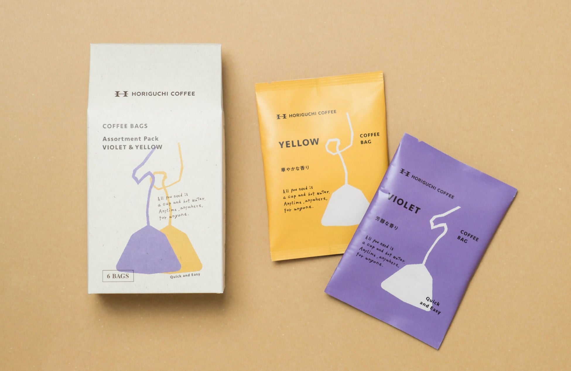また、これまで販売していたお湯に浸すだけで楽しめる「コーヒーバッグ」シリーズは商品構成を全面的に見直し、パッケージデザインも一新。華やかな香りの【YELLOW】と芳醇な香りの【VIOLET】の2種類を3月8日に発売します。