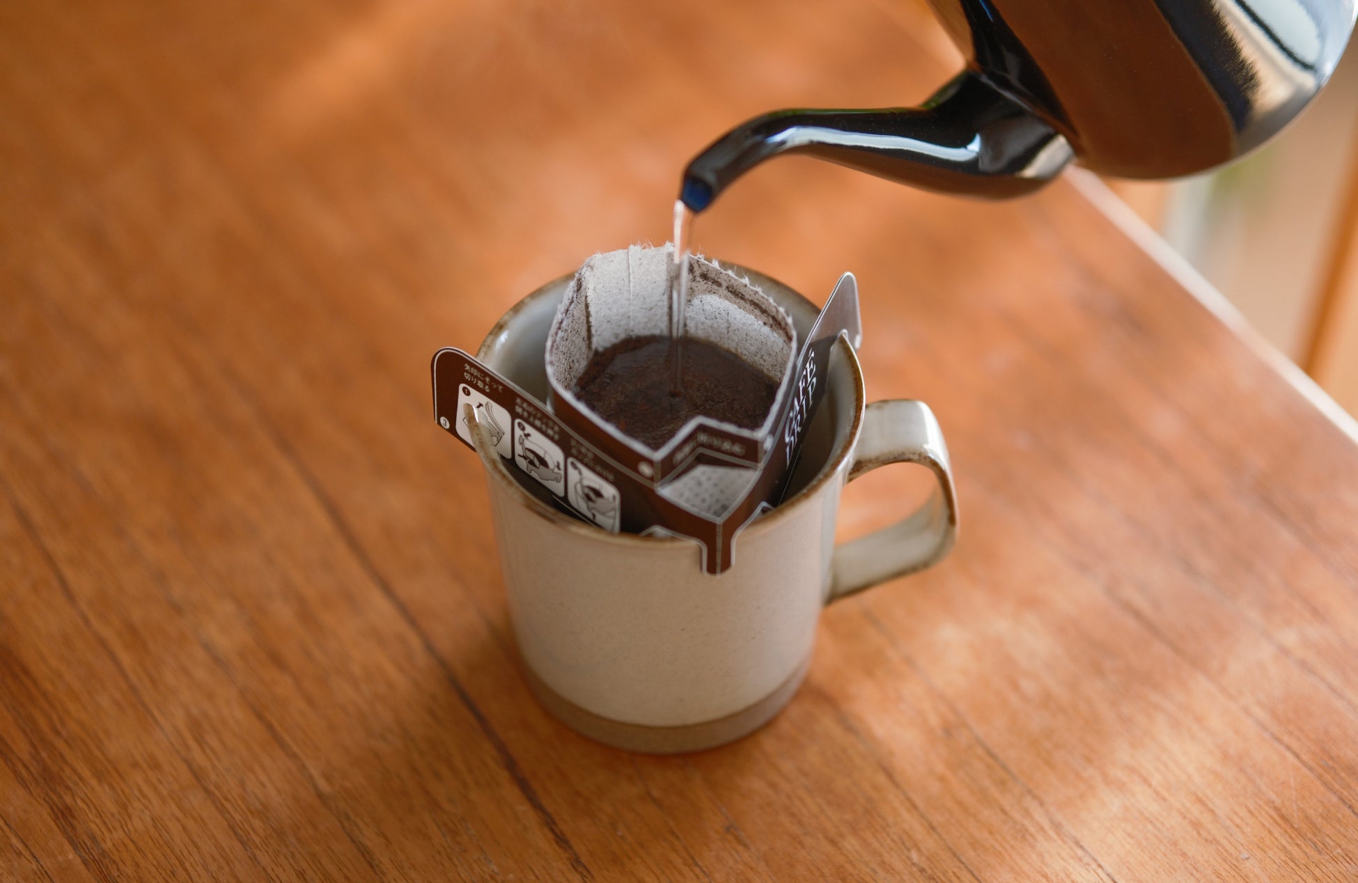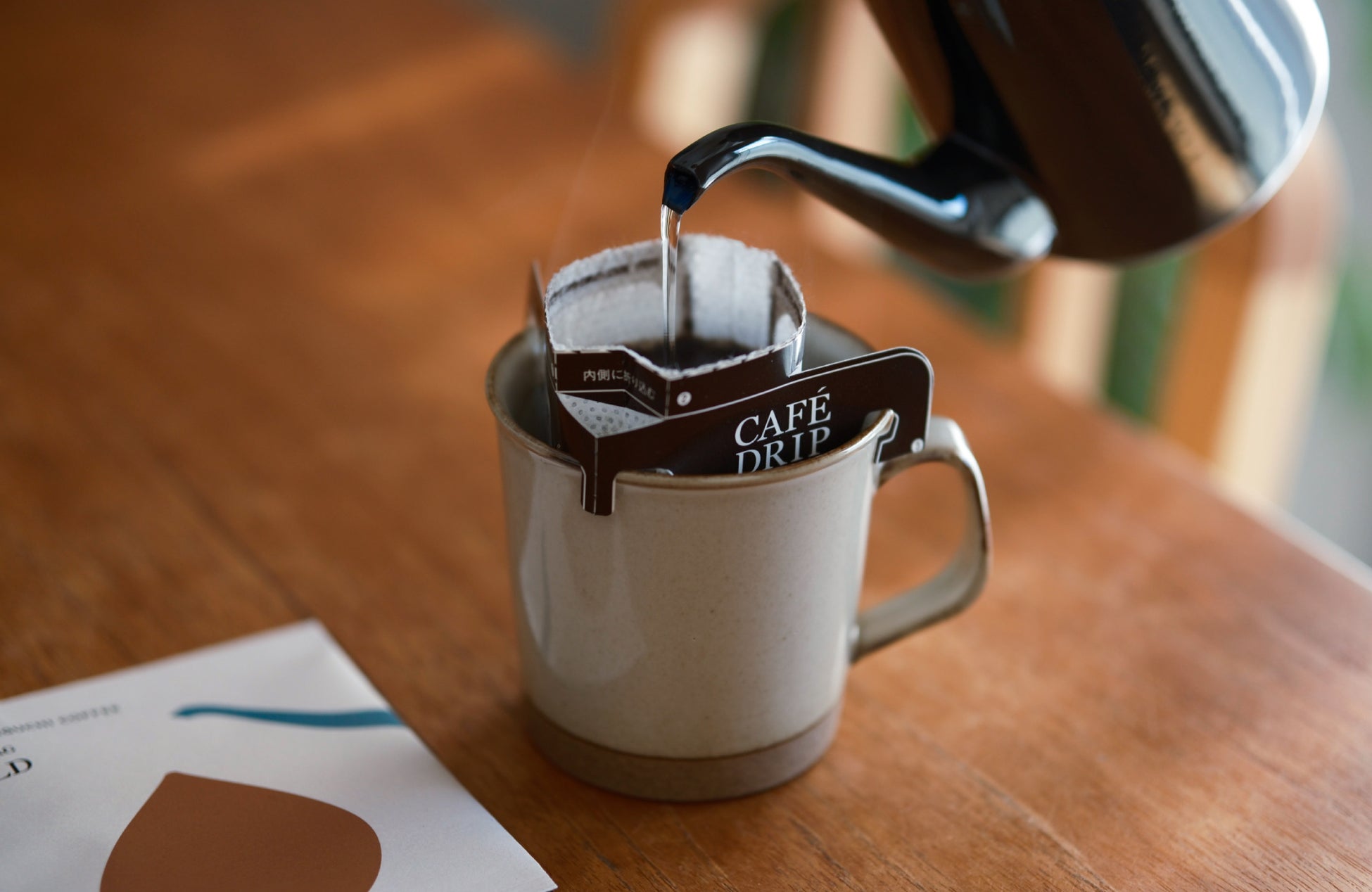 ドリップバッグは一杯分に必要なコーヒー粉がフィルターに詰められた、カップオンタイプの商品です。「コーヒーバッグ」に比べ表現できる風味の幅が広く、濃度の調整もしやすいため手軽ながらも本格的なコーヒー抽出体験をお楽しみいただけます。