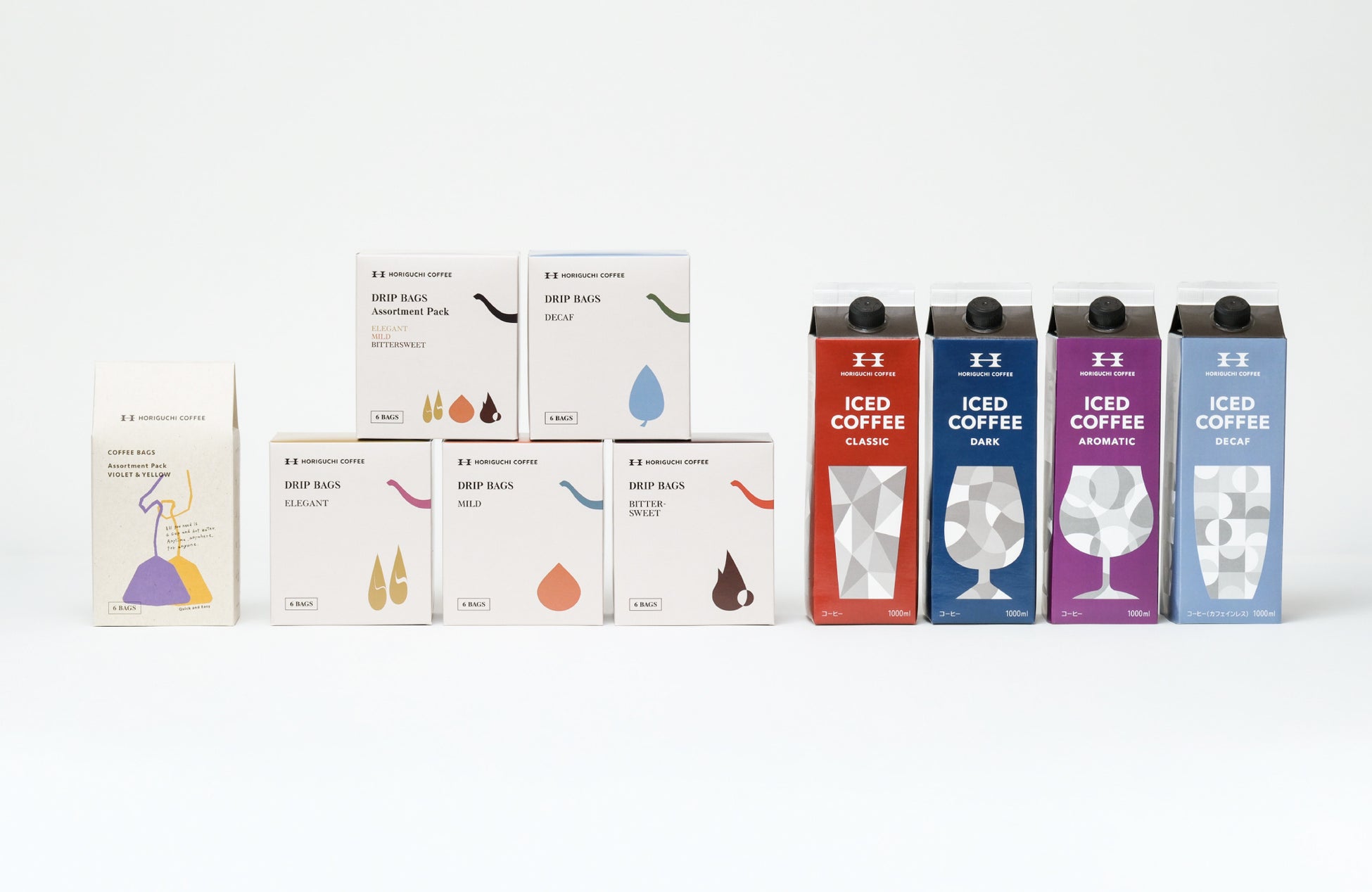 品質を追求しつつも、手軽に堀口珈琲のスペシャルティコーヒーの多様性を体験できる商品ラインナップです。手軽に楽しんでいただけるからこそ風味には一切妥協せず、販売しているコーヒー豆同様に最高品質の素材のみを惜しみなく使用し、商品ごとに最適な焙煎を行なっています。お湯に浸すだけで簡単に楽しめる「コーヒーバッグ」、グラスに注げばすぐ飲める「リキッドコーヒー」、そして本格的なドリップコーヒーを手軽に抽出できる新商品「ドリップバッグ」と、シーンや用途に合わせて商品を選べるようになりました。いずれのパッケージも直感的に風味のイメージが伝わる デザインで、プチギフトや贈答品としてもおすすめです。