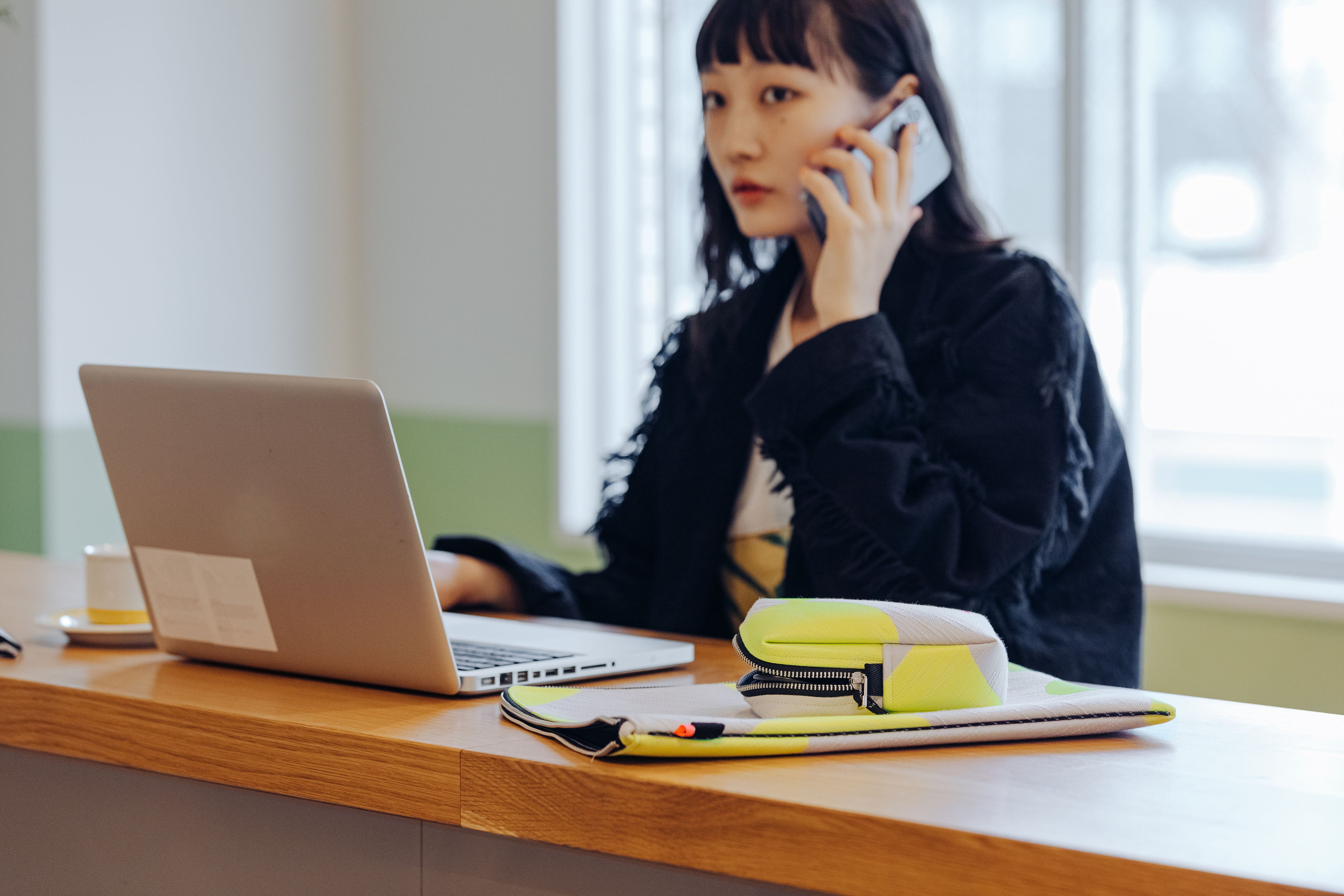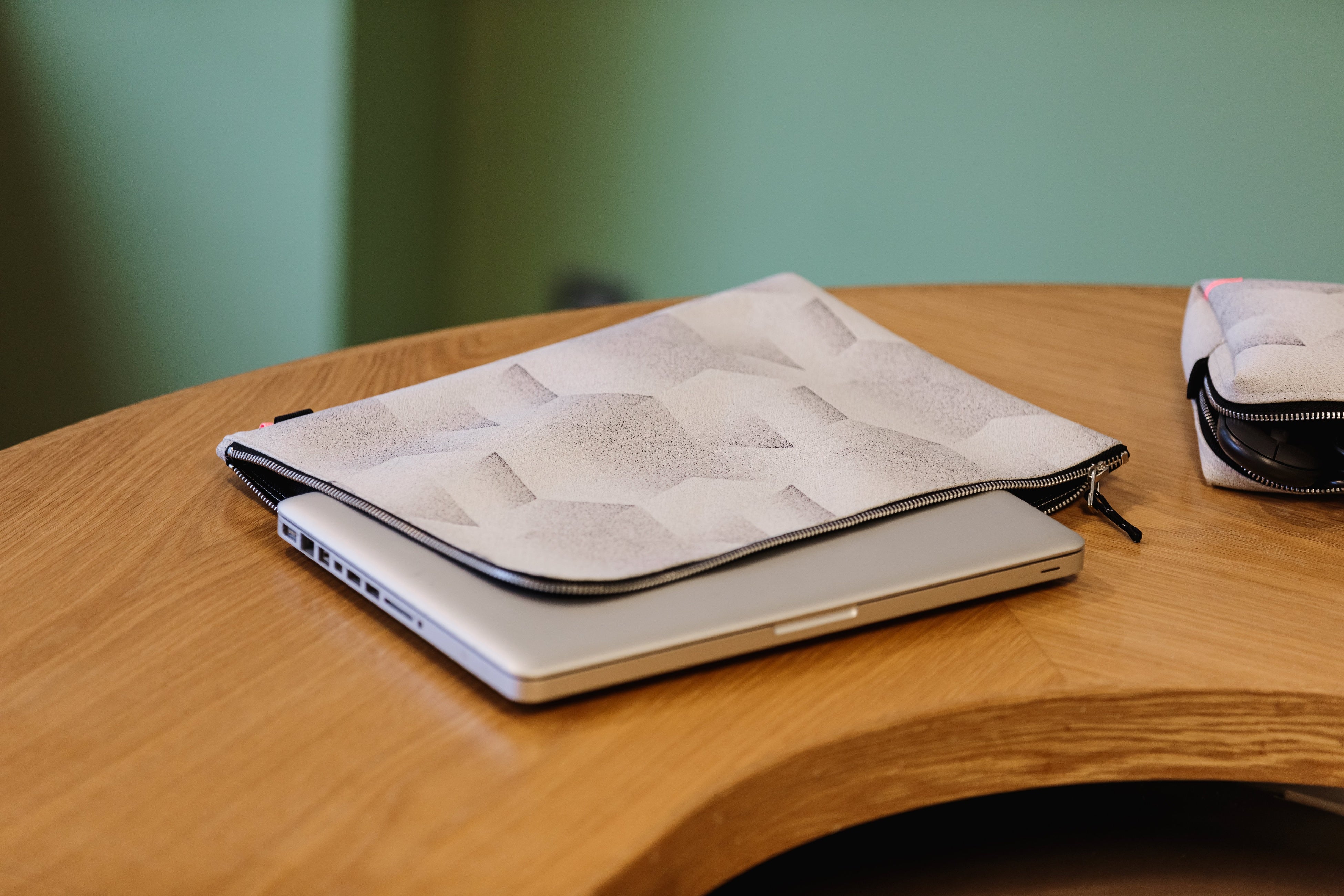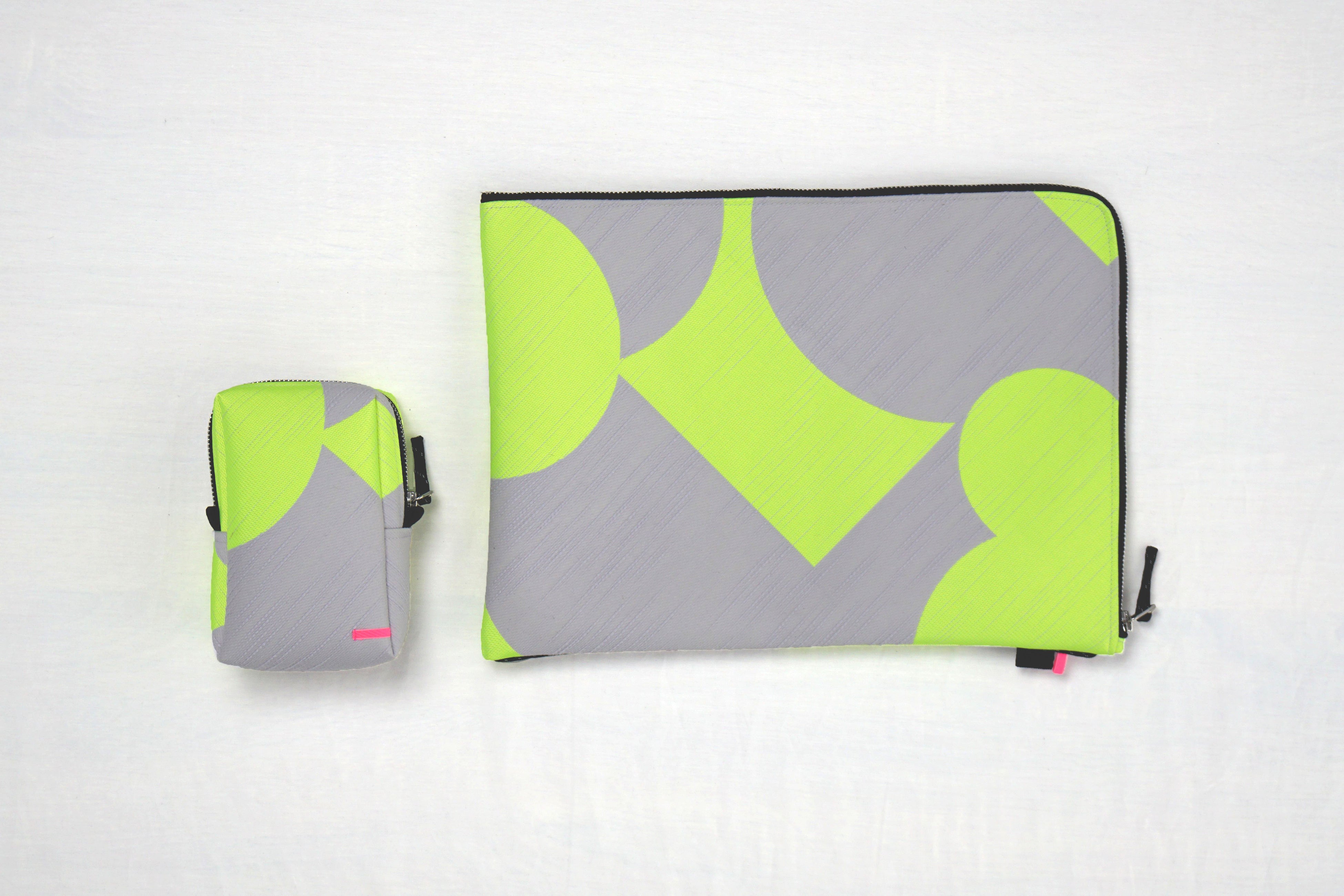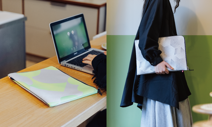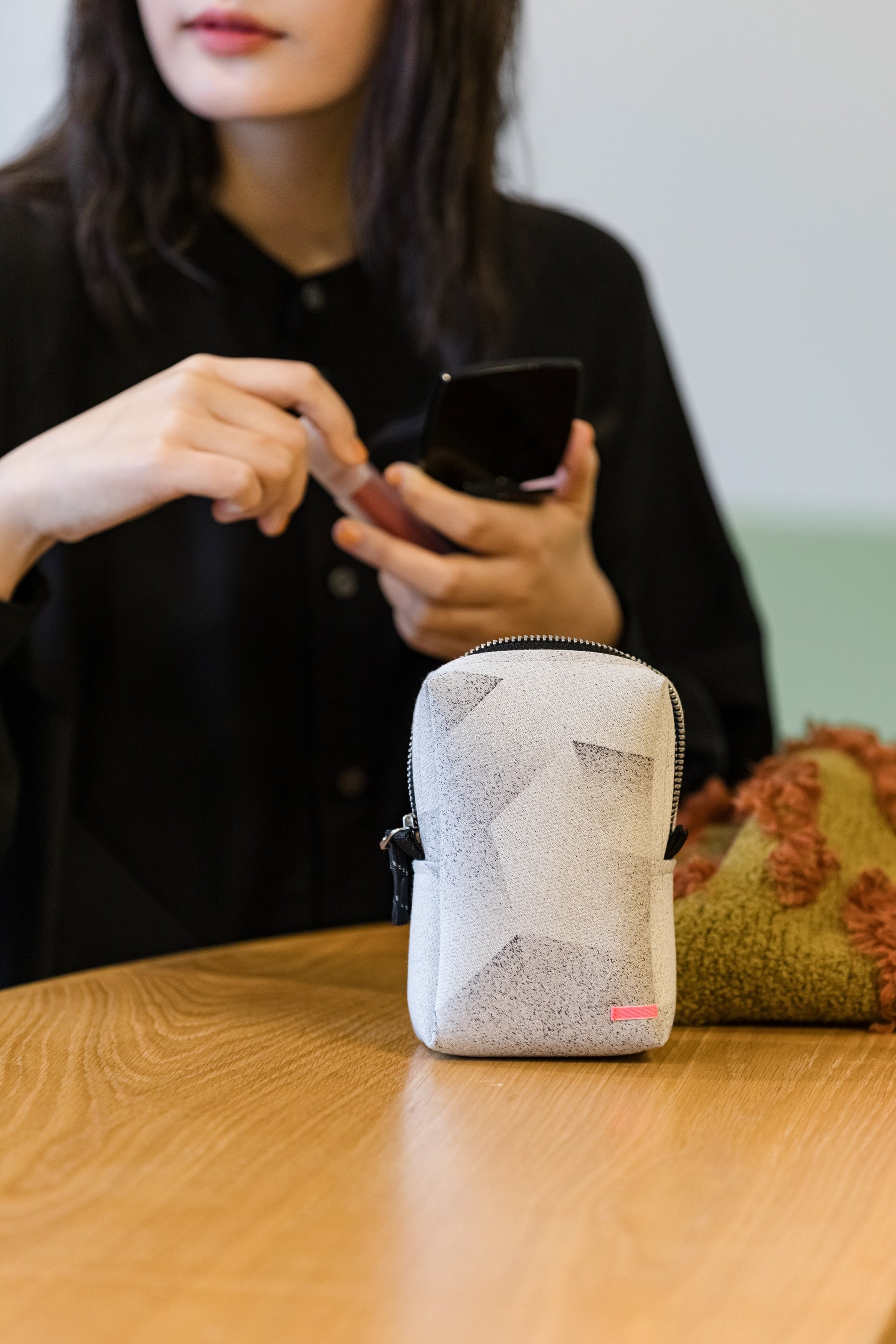 仕事や日々の生活に寄り添えるようなアイテムたち「相棒(バディ)シリーズ」。日常の欠かせないアイテムとなっているスマートフォンや仕事や趣味の活動に必須なノートパソコンなどの相棒(バディ)を持ち歩くのに便利な収納アイテムをリリース。少しゆとりのある設計のため小さな財布やマウスやコード類なども一緒に収納し持ち歩けるアイテムです。POLSのオリジナルテキスタイル生地の裏面にポリウレタン加工を施し、独特のハリと弾力のある生地を開発いたしました。加工を施すことにより型崩れが起きにくいため、立体的な形のポーチに仕立てても形状が維持されるのがポイントです。