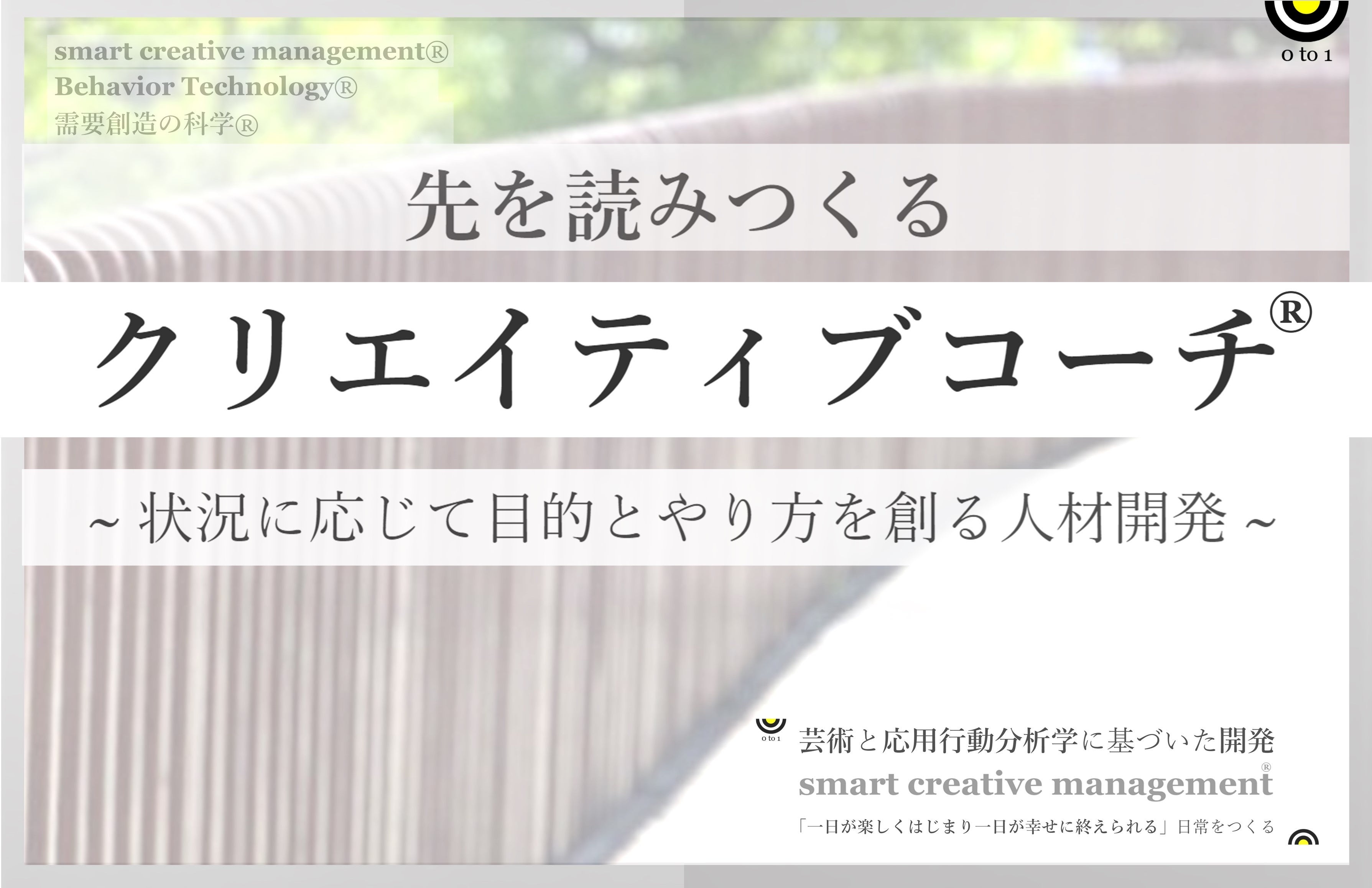 取引先やお客様とそもそもの目的をすり合わせ、要件を定義し、実現のやり方を創っていくには、ティーチングだけでは対応できない。コーチングが必要になる。しかし、現在のコーチングは対応できる範囲と具体的なやり方が、科学的に実験検証され体系立てられていないため、再現性が不足している。その結果、個人の経験・知識・キャラクターに依存してしまっている。応用力を高め生産性をより上げるはずのコーチングが適切に機能していない。リーダーや管理監督者は、メンバーや部下がハウツーを求めたがると言う。そもそも、コーチングが適切にできていれば、ハウツーを求める行動は発生しない。コーチングはビジネスの相手と自分の両方の立場から、目的を企画・設定し、その目的を実現するための具体的なやり方を創る習慣を形成するためのもの。この状態を変えていくために、メンバーや部下が“やり方を目的から思考し創る”ことができるようにする“クリエイティブコーチ®”の提供を開始しました。