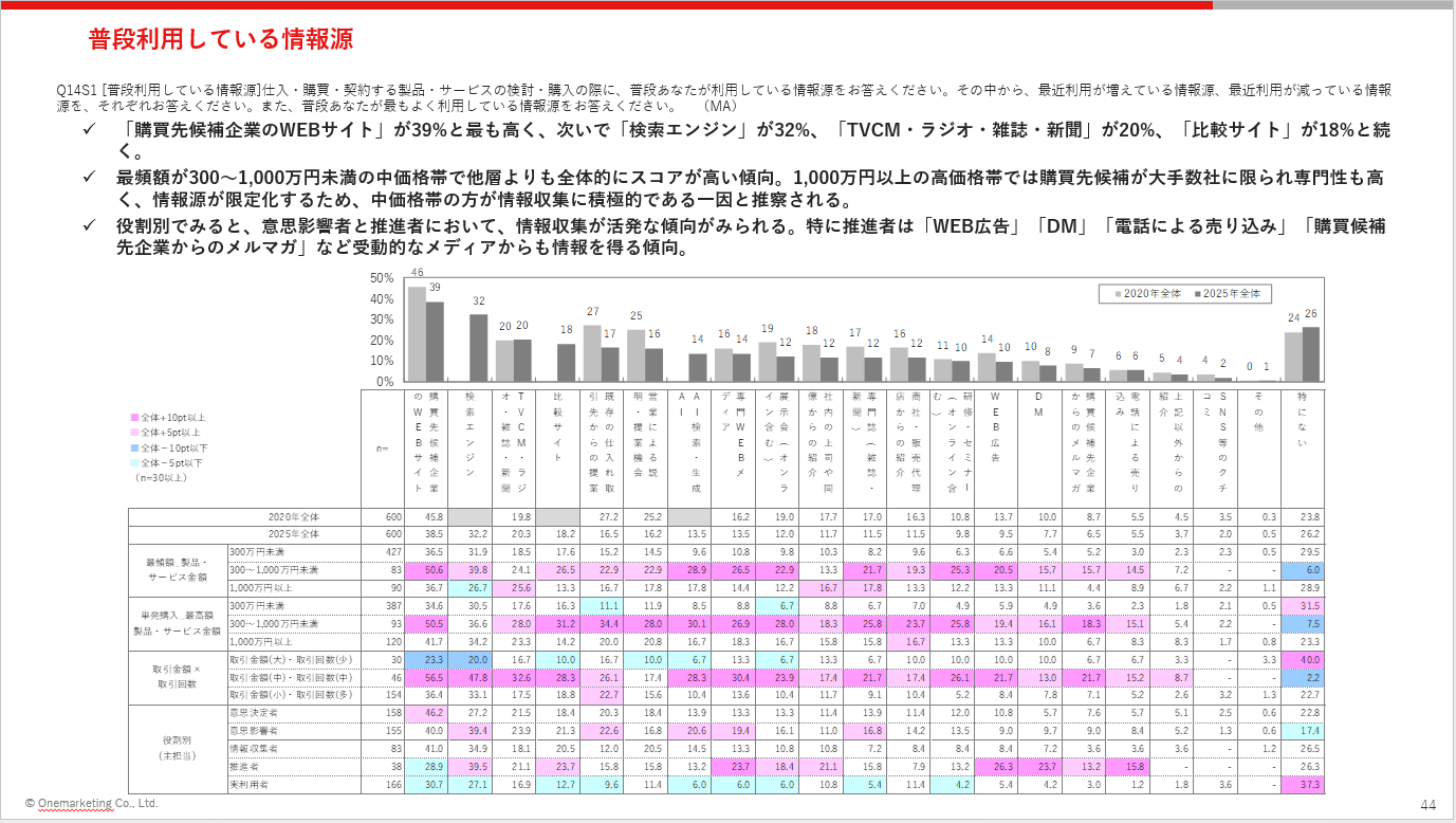 本調査は、BtoB購買の構造変化を背景に、「誰が」「いつ」「何を」検討しているかを多面的に把握し、早期から複数関与者へアプローチする重要性を明確に示しました。