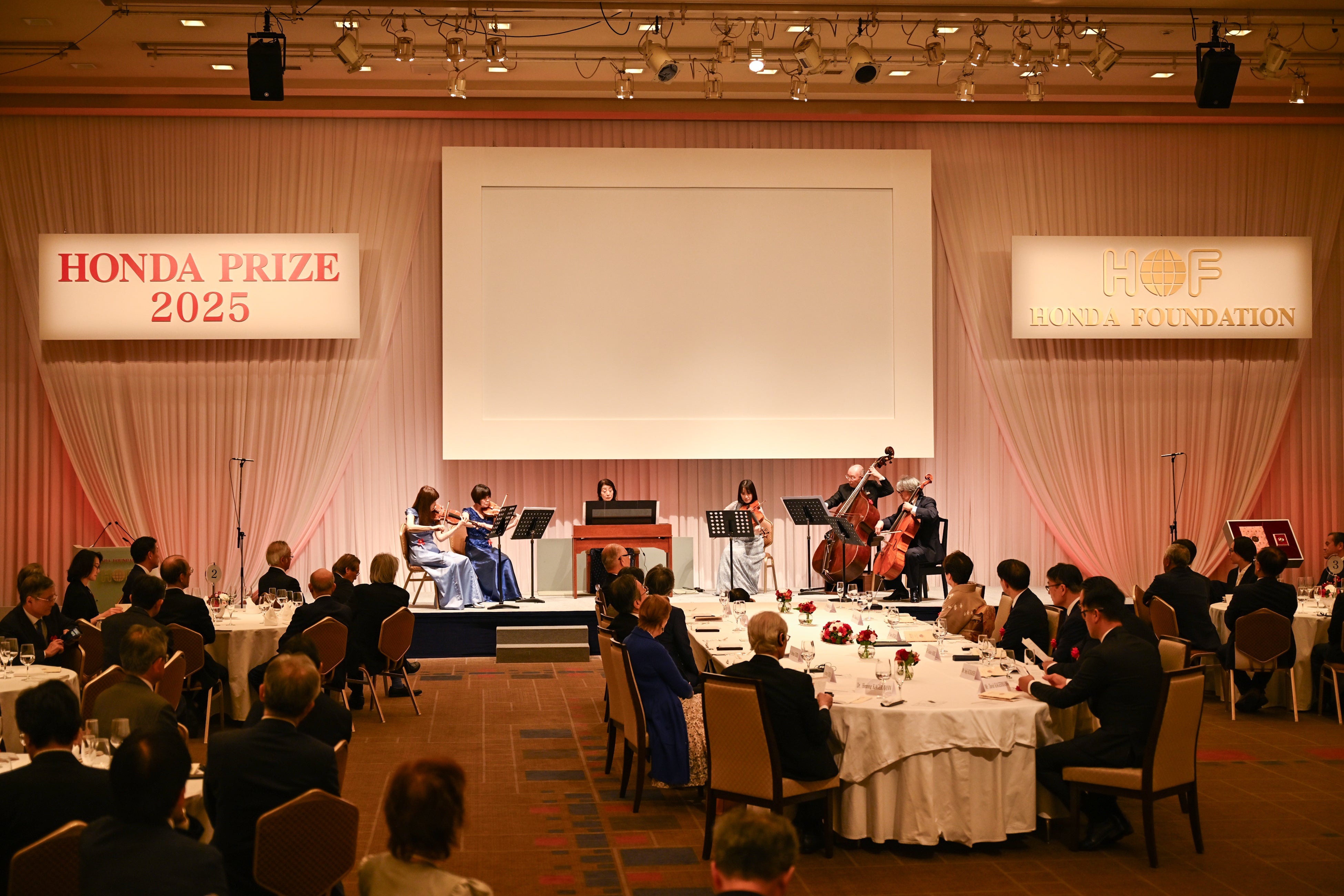 記念演奏ではイタリアの作曲家・ヴァイオリニストであるアルカンジェロ・コレッリが「降誕の夜のために作曲した」という『Concerto Grosso(合奏協奏曲)』が披露されました。美しいバロック音楽の演奏により、会場内はあらためて伊賀博士の本田賞受賞を祝う温かな空気に包まれました。