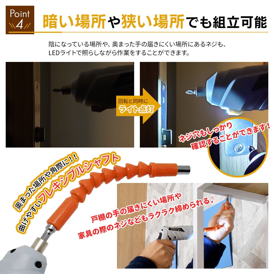 電動ドライバーを使うと組立時間もグッと縮まり、なにより簡単で楽々な作業に!