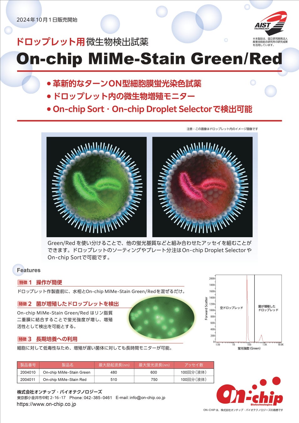 ドロップレット用微生物検出試薬「On-chip MiMe-Stain Green/Red」10月1日発売決定