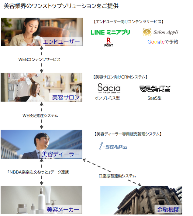 POSシステムとスマホアプリ、コンテンツサービスを併用して利用することで、サロン顧客の新規獲得やリピート集客につなげることができます。営業活動の変革とお客様のニーズを捉えた最適な商品・サービスを提供することで、当社と理美容業界のDX化を普及・推進させることを目指します。