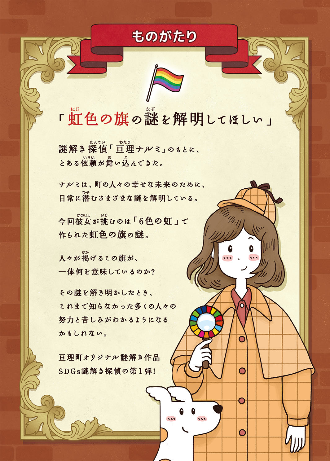 このイベントは、謎解き探偵の「亘理ナルミ」とともに謎を解きながらSDGsの目標達成に向けて必要なことを学んでいくイベントで、第一弾となる今作は”虹の旗”をテーマに性の多様性について紐解く内容となっています。