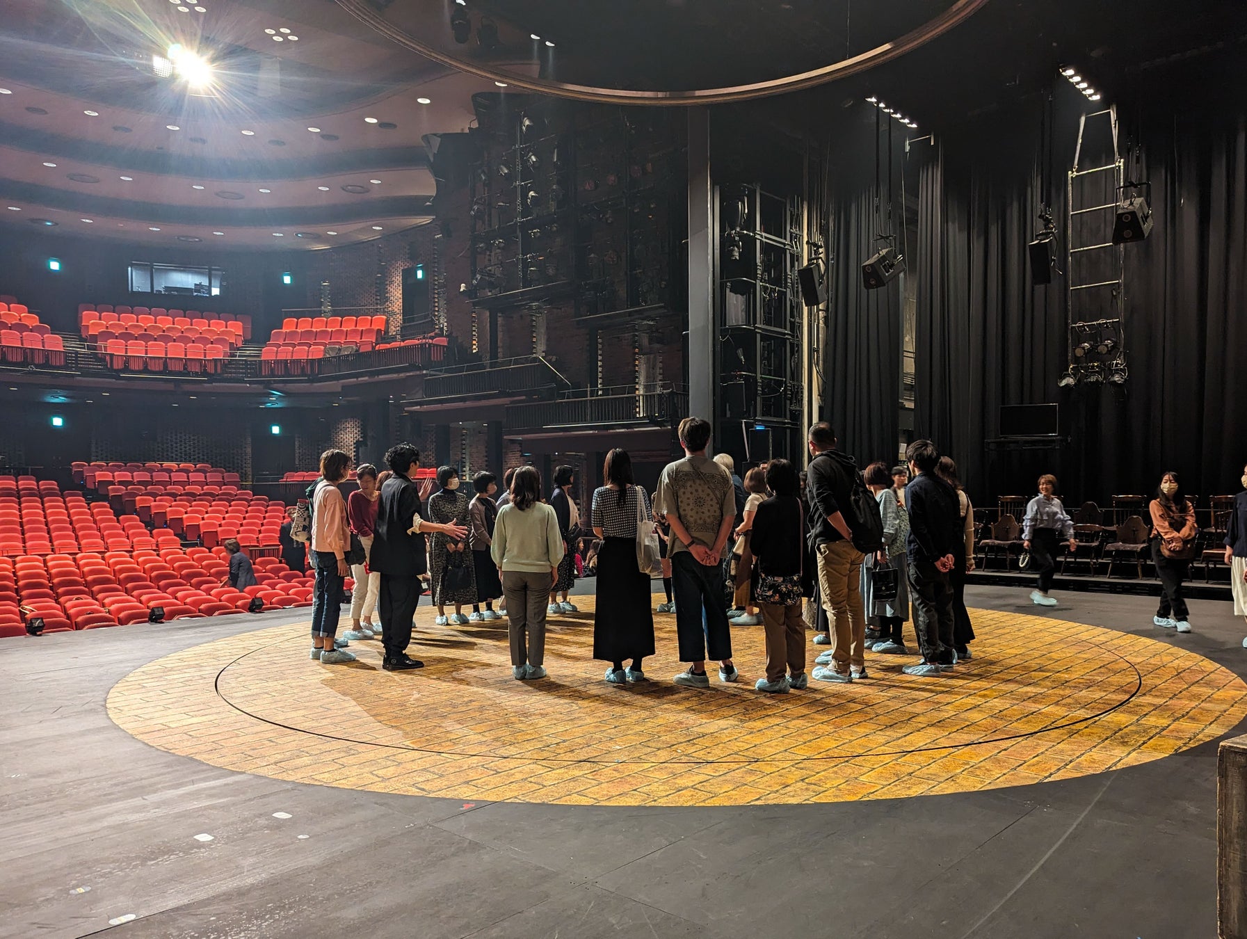 実際の舞台にあがり、劇中使用された舞台装置「盆」の回転を特別に体験させていただきました。装置に込められたメッセージを知り、普段は見ることができない景色を味わうことができました。