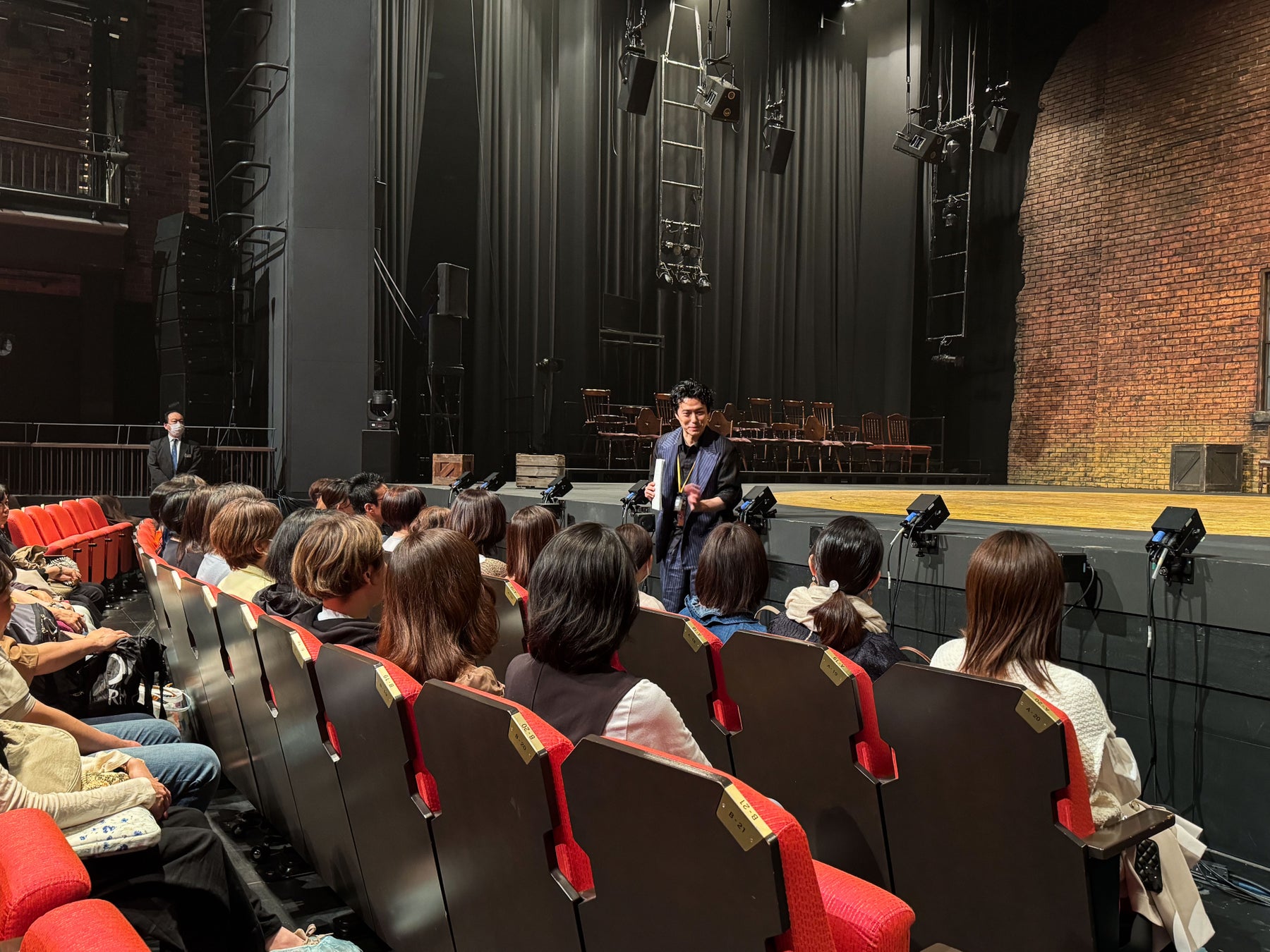 株式会社recri(レクリ)(東京都港区、代表取締役:栗林嶺)が運営する、チケットのサブスク「recri」は、ミュージカル『VIOLET』(東京公演会場:芸術劇場プレイハウス/企画・制作・主催:梅田芸術劇場/共催:公益財団法人東京都歴史文化財団 東京芸術劇場)にて、recri会員限定の解説&舞台装置体験イベントを実施しました。4/14・20の2日間に渡り、本ミュージカルの演出家である藤田俊太郎様にご登壇いただき、ミュージカルの成り立ちやVIOLETの制作秘話、演出にまつわる解説をお話しいただきました。さらに舞台にあがり、劇中使用された舞台装置「盆」の回転も特別に体験しました。